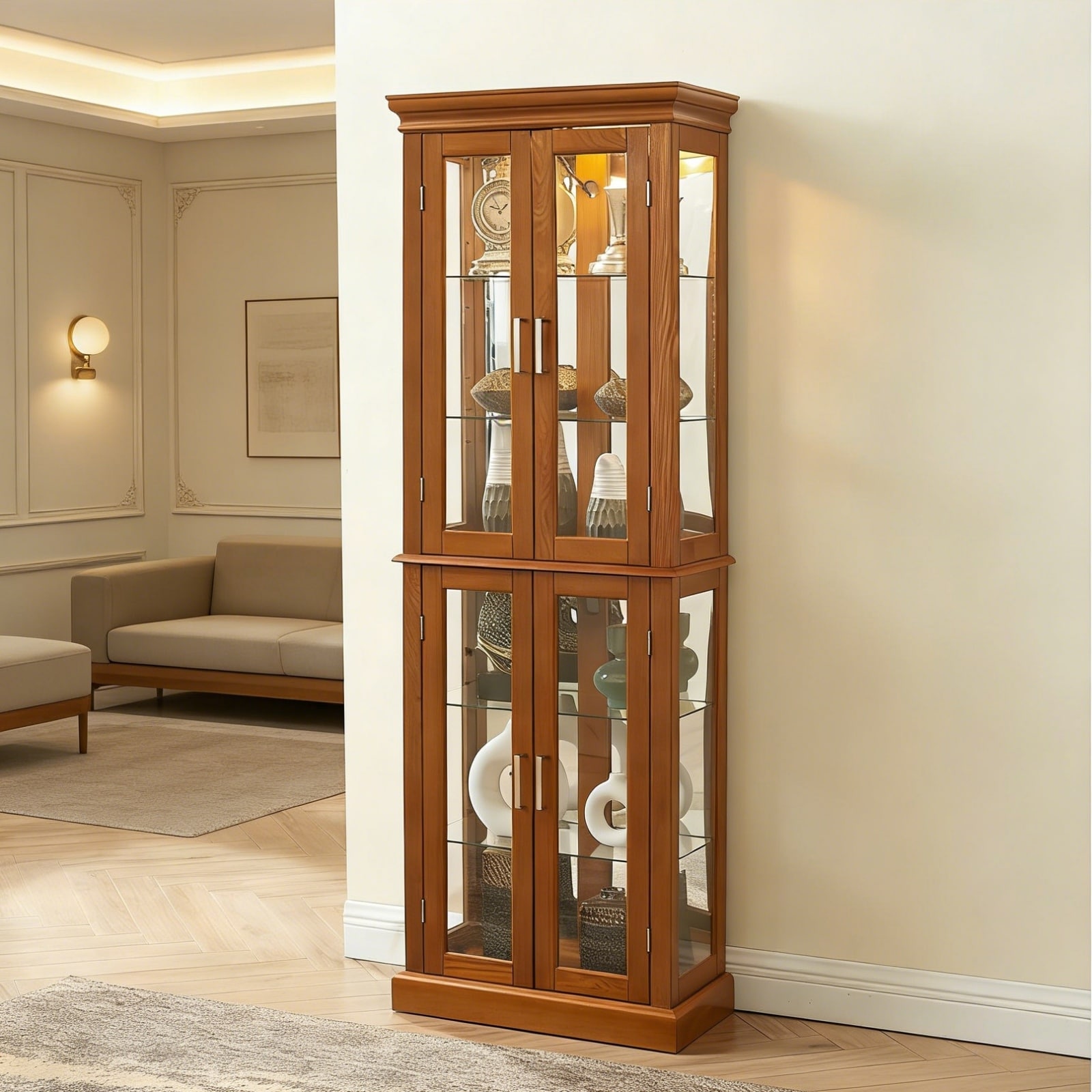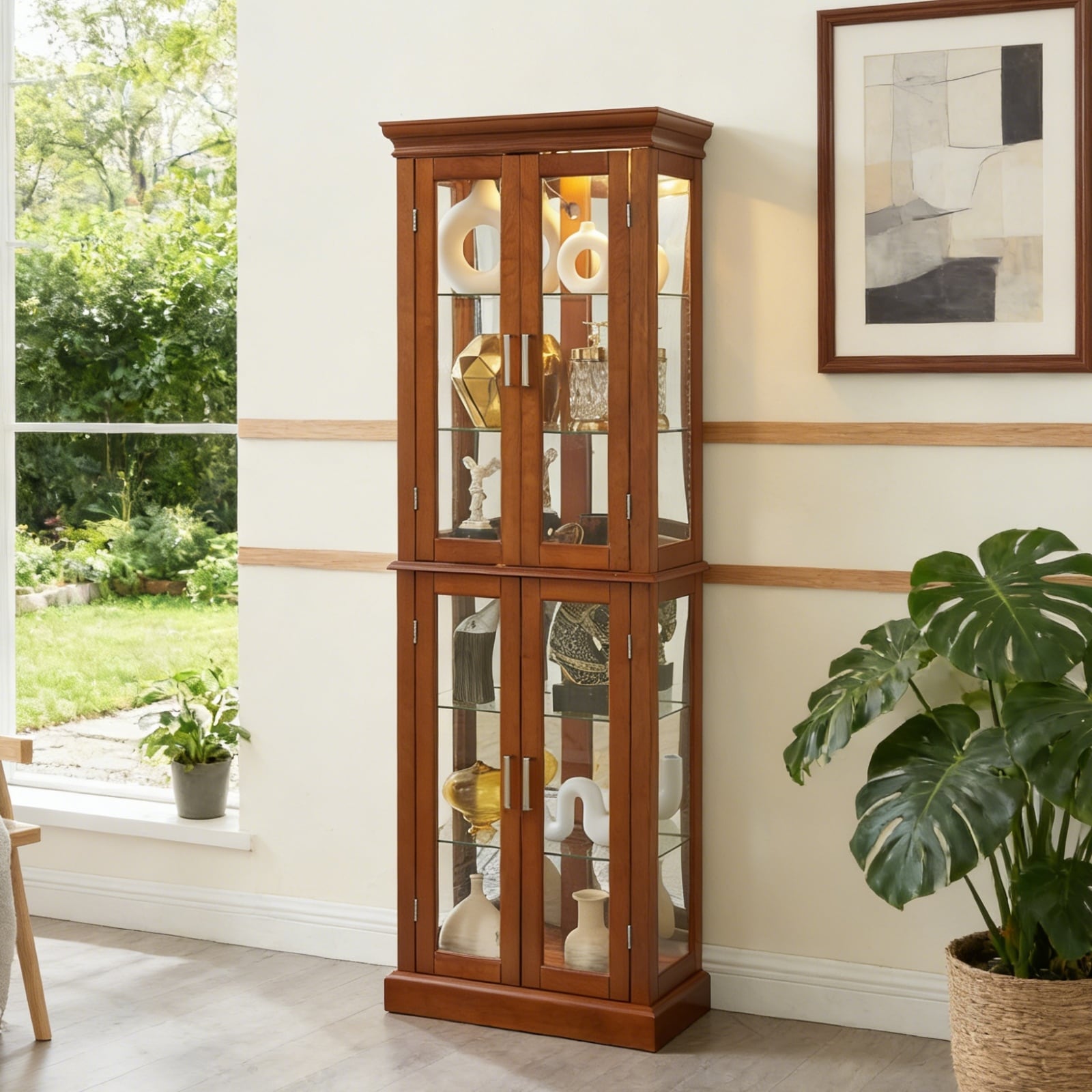Glass Curio Display Storage Cabinet with Shelves (Bulb Not Included)