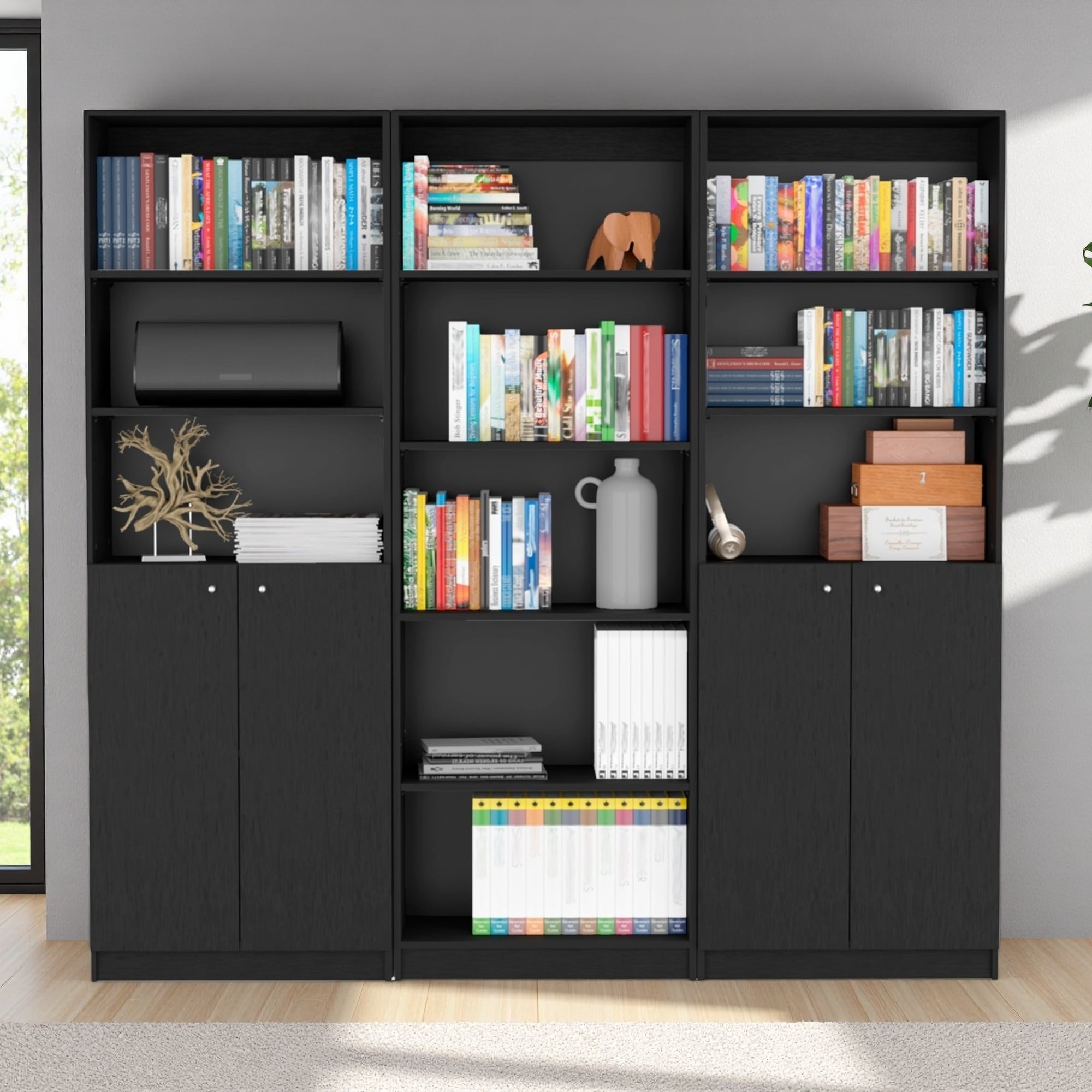 71.1"H Manufactured Wood 3-Piece Living Room Set with 4-Shelf Bookcase and Dual 2-Door Bookcases for Concealed Storage & Display