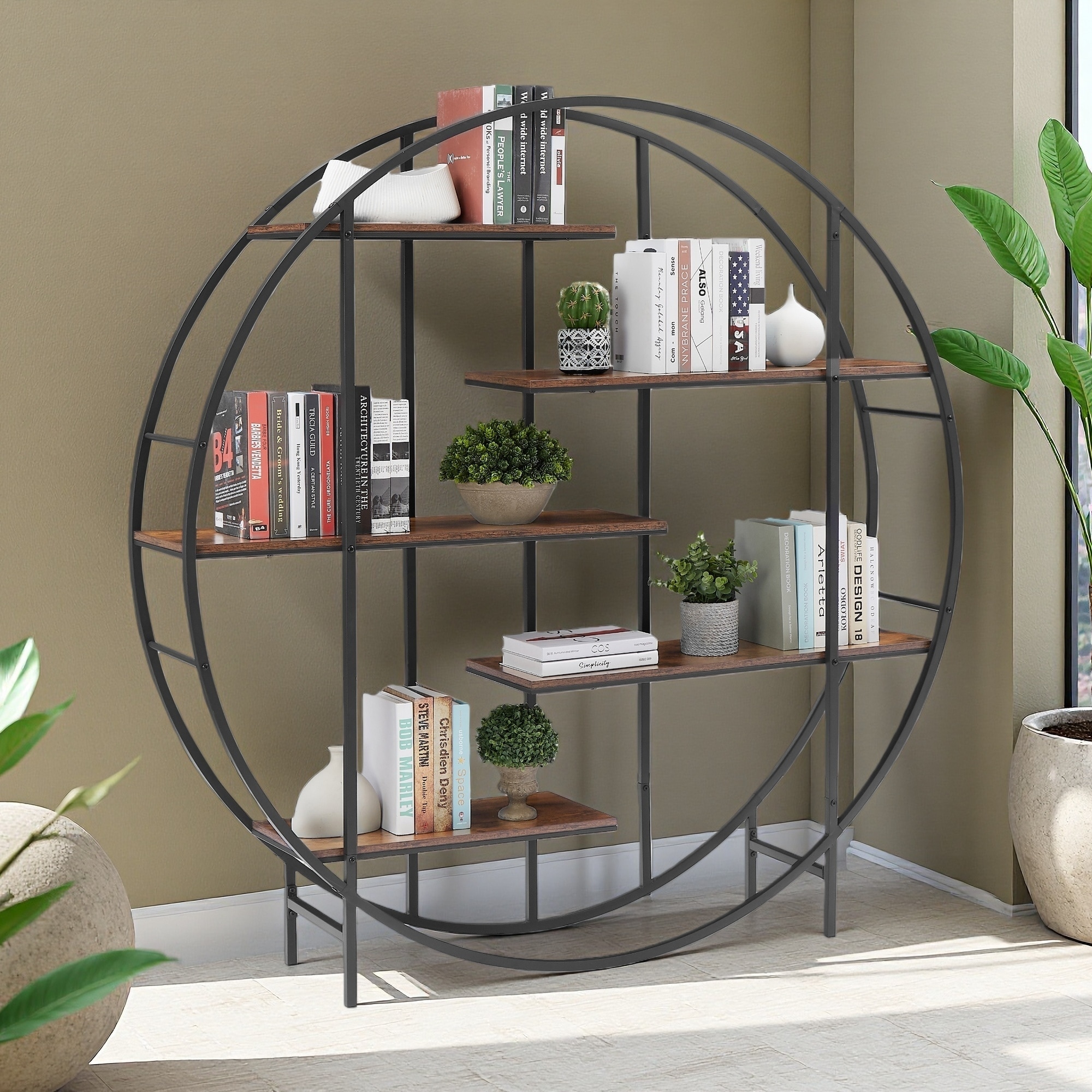 67"H 5-Tier Round Metal Plant Stand, Steel Frame & Particleboard Rack