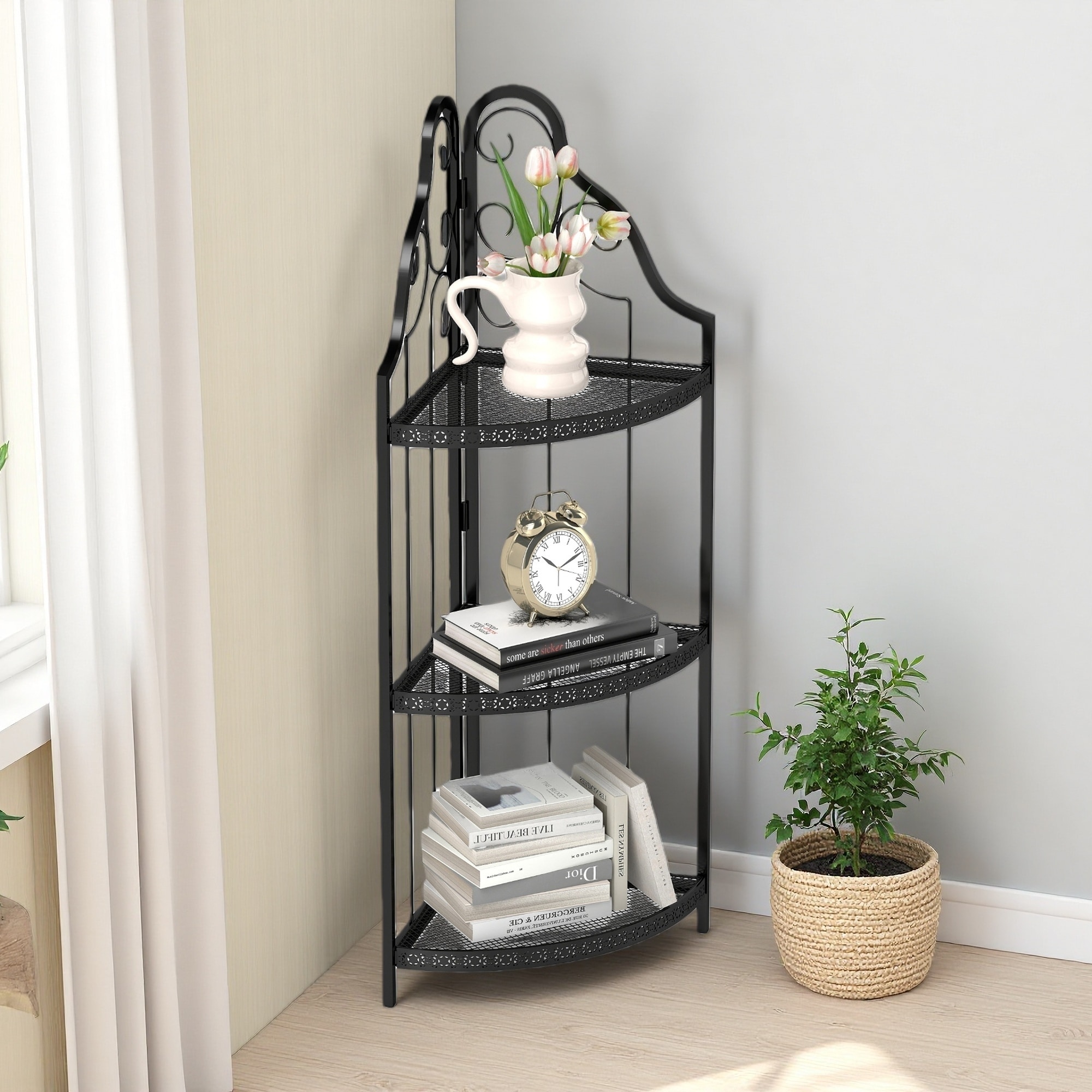 41"H 3-Tier Corner Open Shelf, Freestanding Bookcase, Plant Stand, Metal Frame