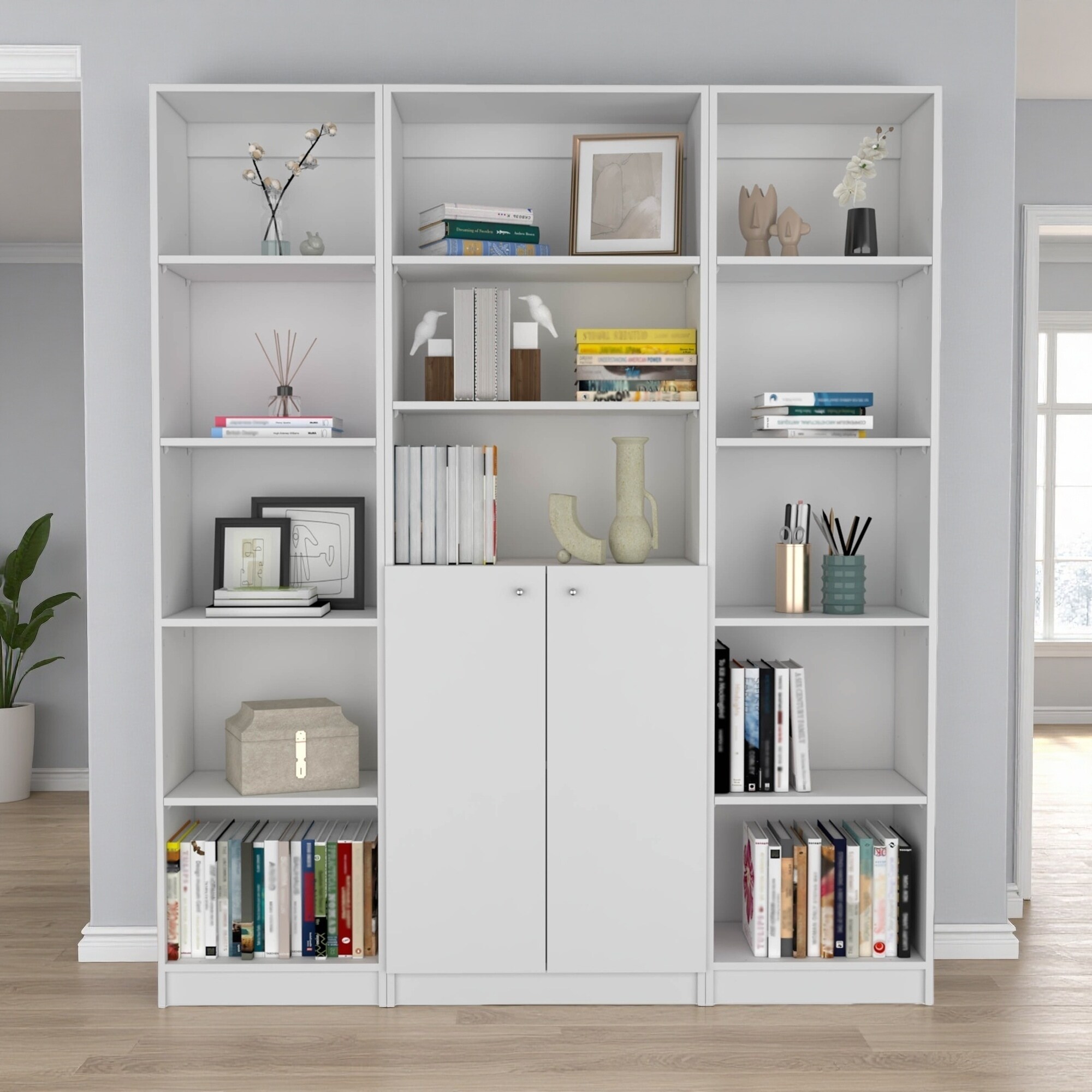 71.1"H 3-Piece Living Room Set, 3 Bookcases, Space-Efficient, Dual-Door Secure Storage