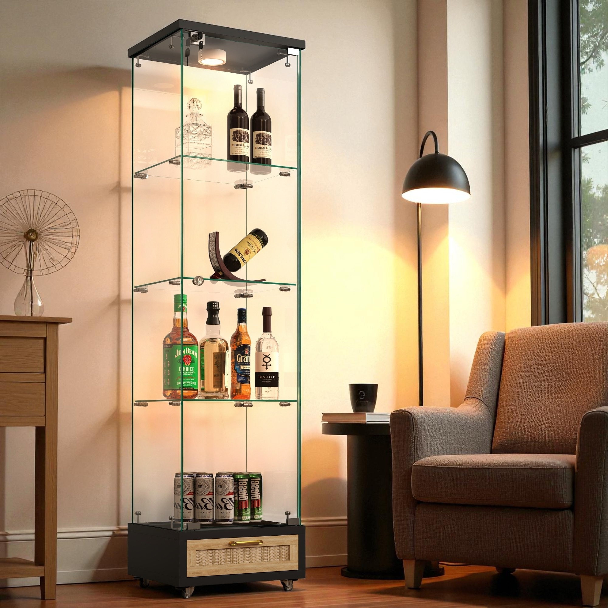 Lighted Display Cabinet with 2 Tempered Glass Doors and Adjustable Shelves