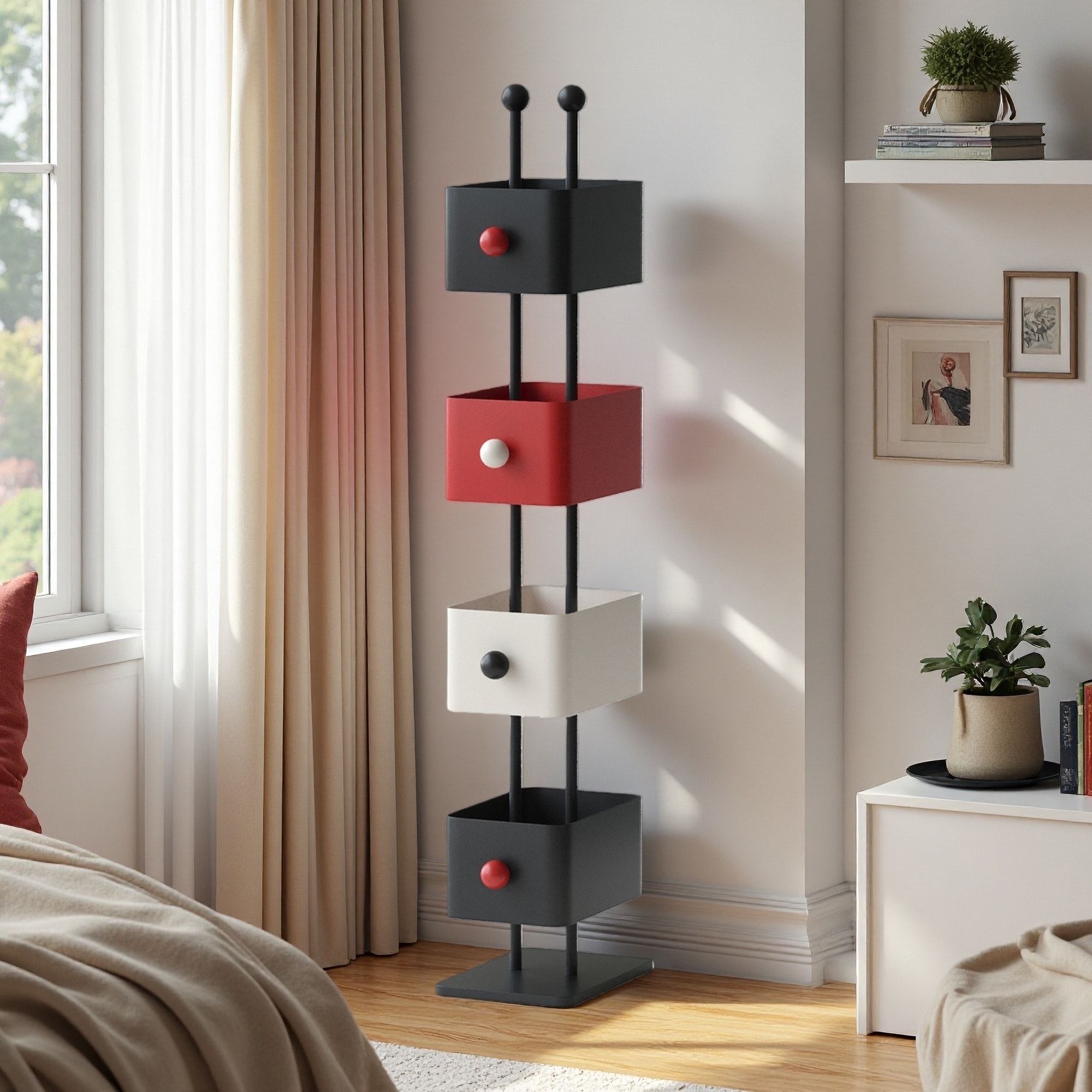 52.36"H Compact Box Bookshelf - Iron Bedside Shelf with Creative Color Design, 90° Angle Corner Placement for Children's Room