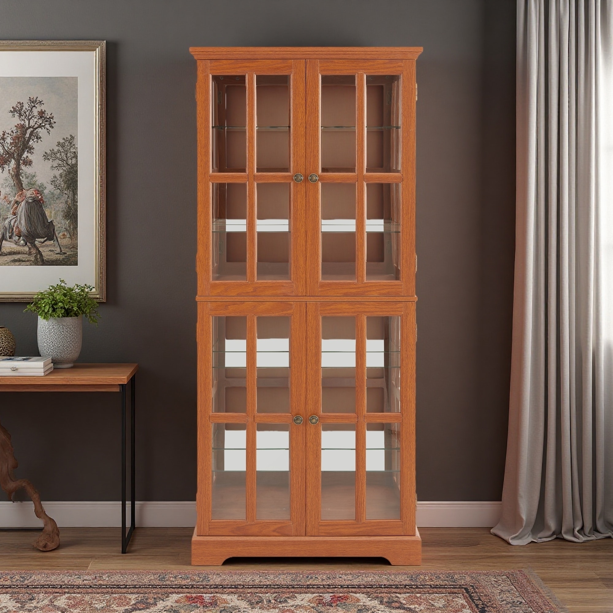 68.7"H Curio Display Cabinet, Glass Doors, 4 Adjustable Shelves, LED Bulb Included