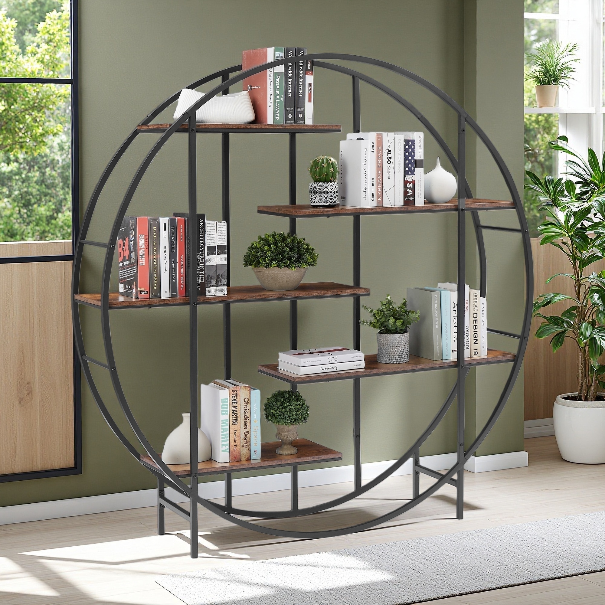 67"H Round 5-Tier Metal Plant Stand, Particleboard with Steel Frame, Bookcase & Display Rack for Living Room, Terrace, Garden
