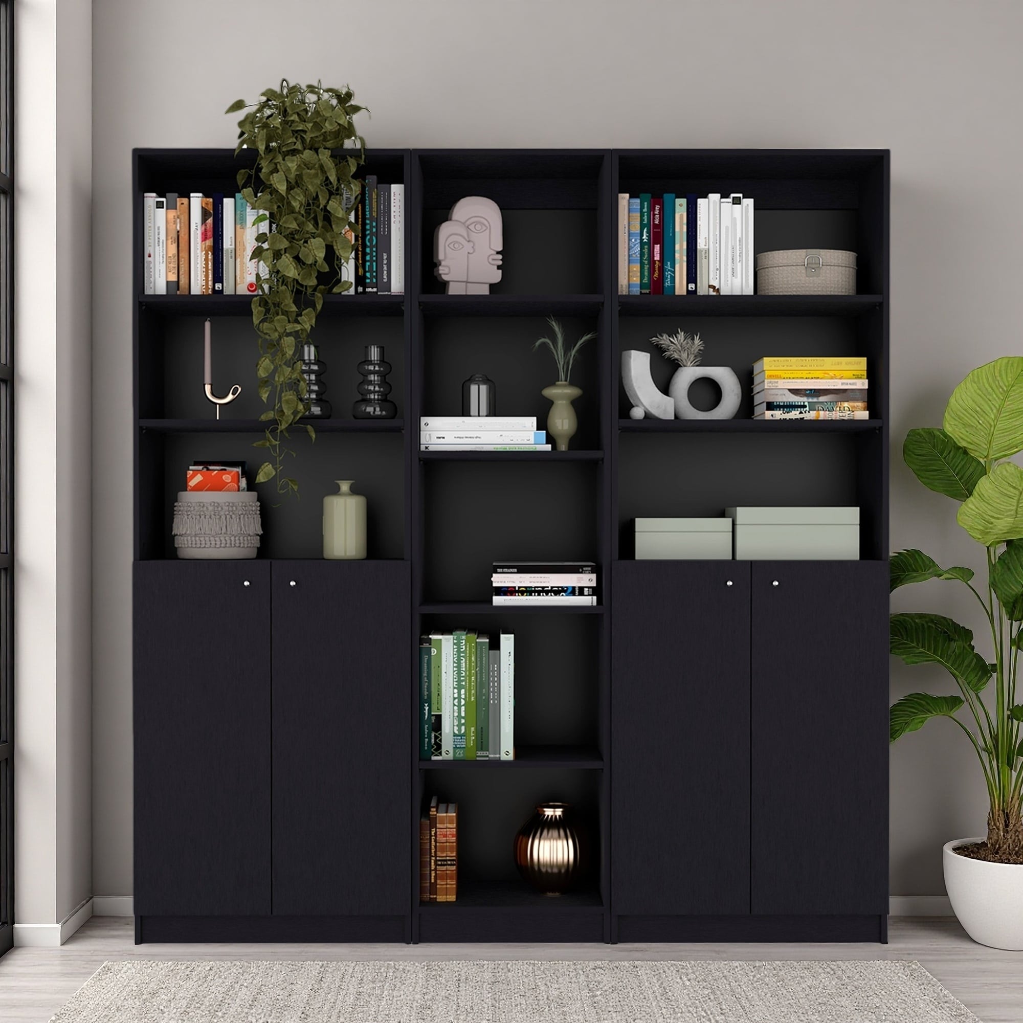 71.1"H 3-Piece Living Room Set, Wenge, Slim Bookcase, Dual 2-Door Storage & Display