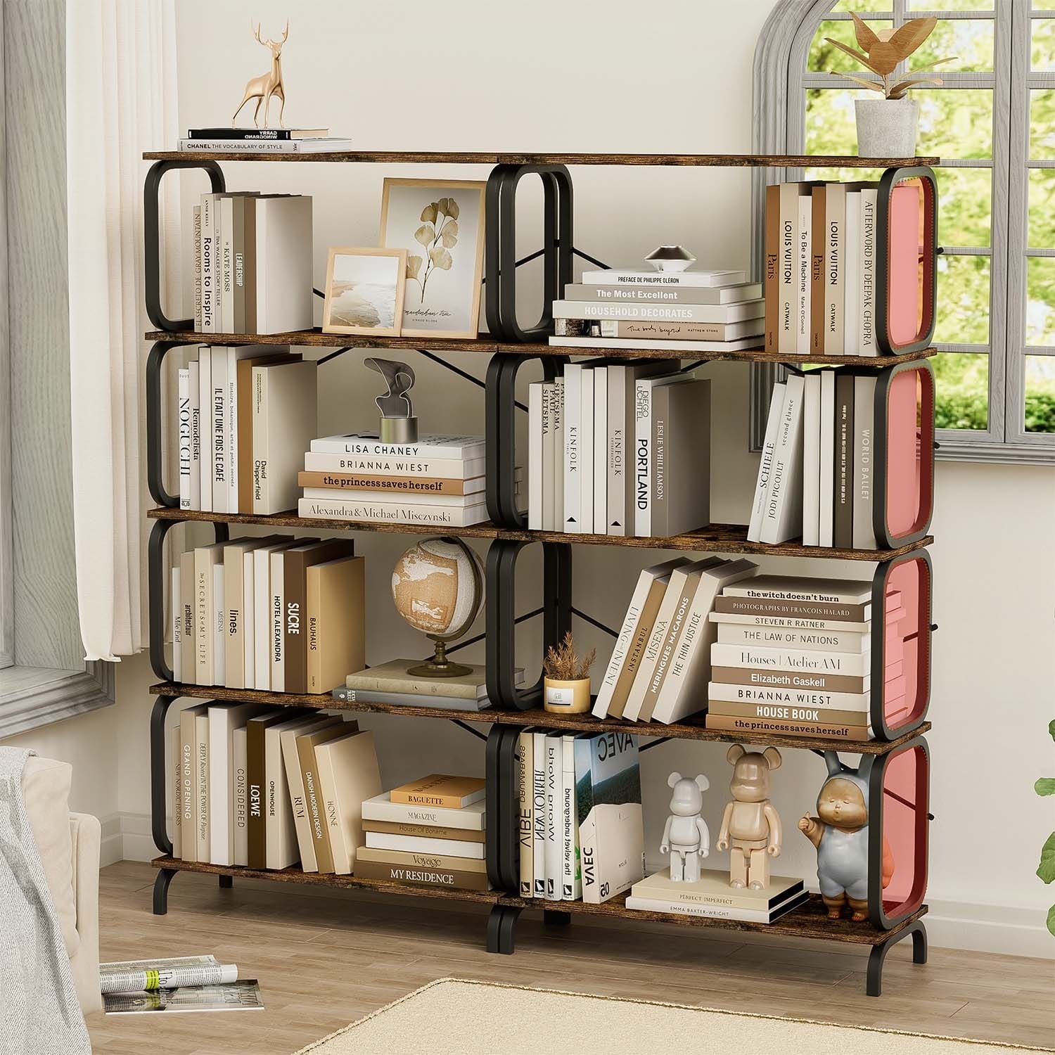 Bookshelf Industrial 5 Tier Etagere Bookcase, Freestanding Tall Bookshelves - 1 Pack
