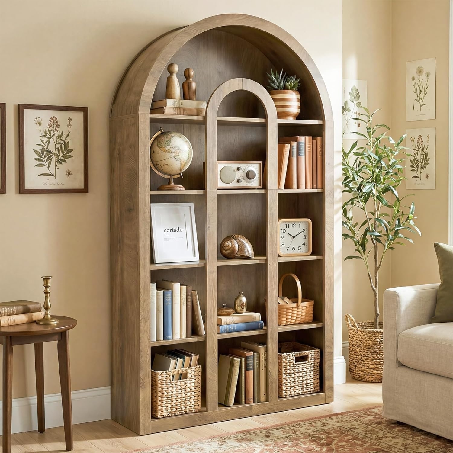 71-Inch Tall Arched Bookshelf with Open Shelves for Living Room, Office, Bedroom