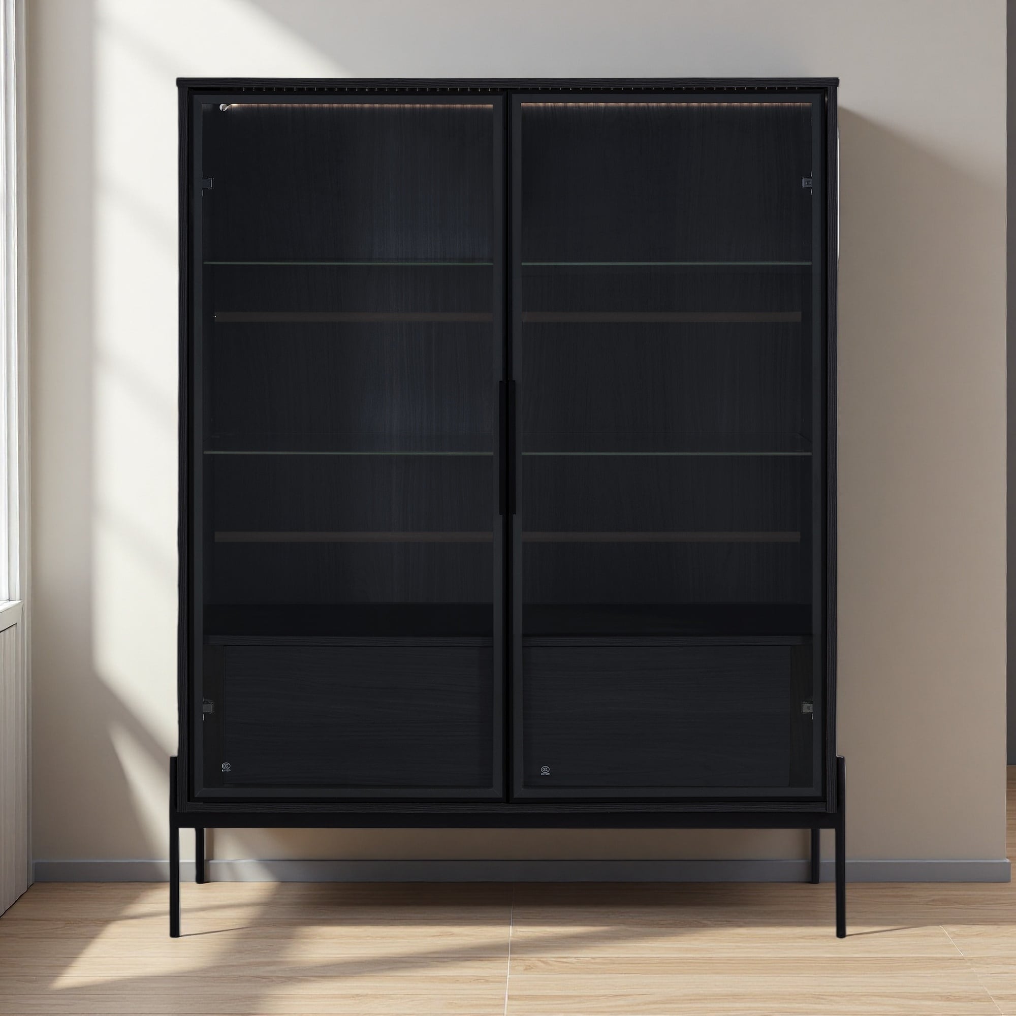 Tempered Glass Display Cabinet with Bluetooth LED Lights and Lock