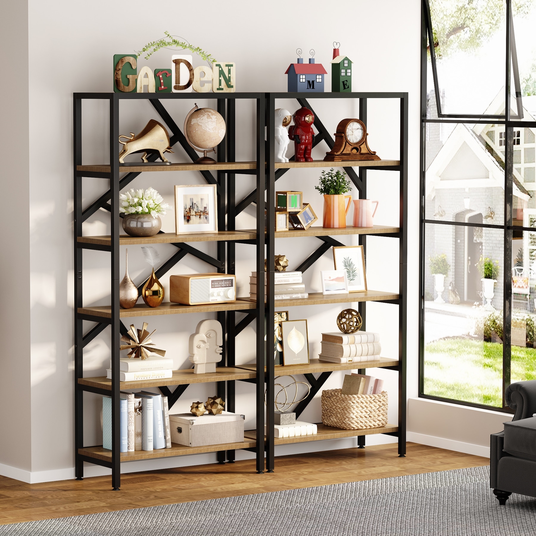 5-Tier Rustic Brown Bookcase, Vintage Industrial Storage Shelf for Home & Office