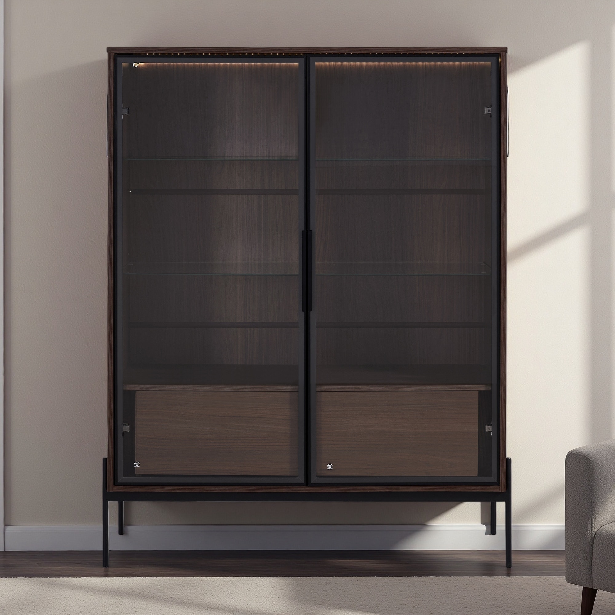 51.2” Tall LED Display Cabinet with Tempered Glass Doors and Metal Legs. Its Modern Minimalist Style Suits Offices,Studies