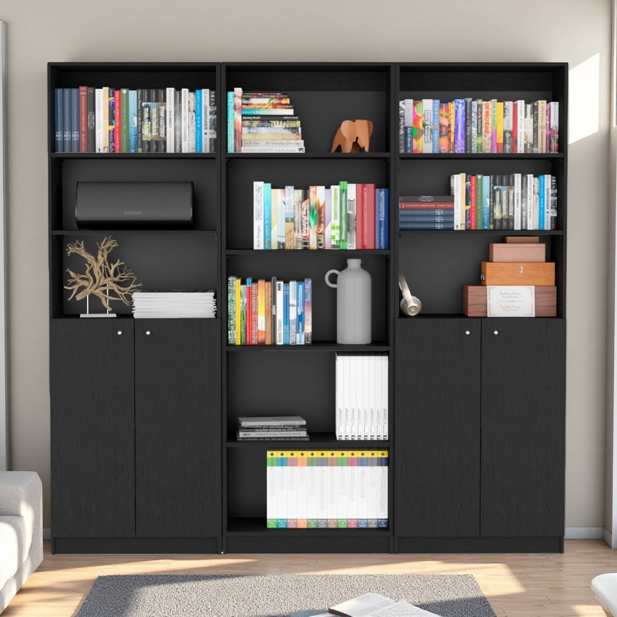 71.1"H 3-Piece Living Room Set, 4-Shelf & Dual 2-Door, Concealed Storage & Display