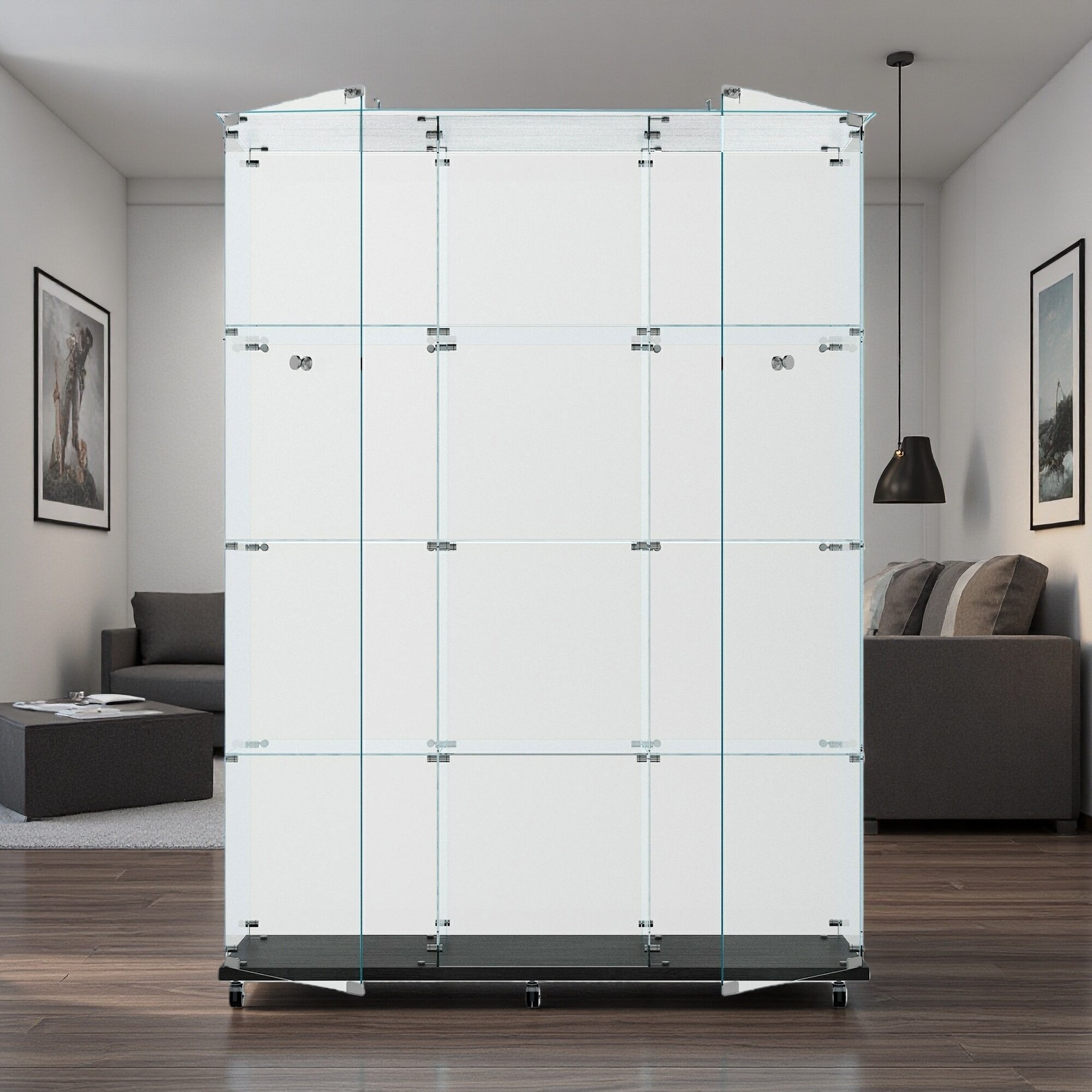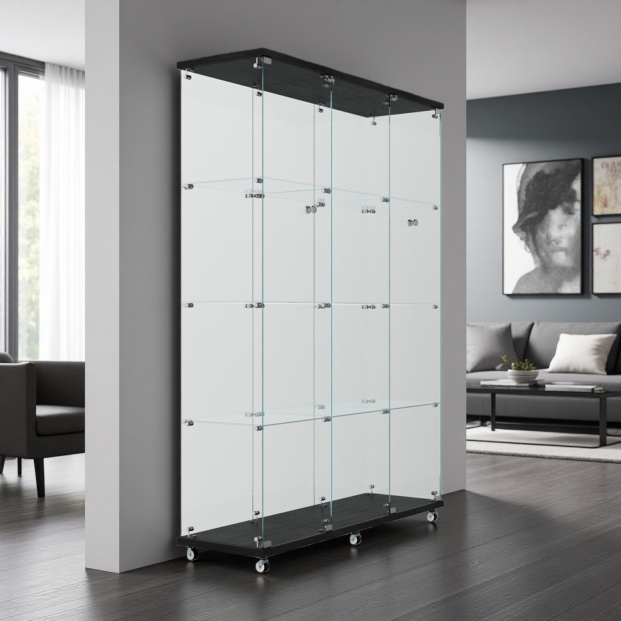 Two-door Glass Display Cabinet with 4 Tier Storage Shelves Floor Standing Curio Glass Bookshelf for Living Room Bedroom Office