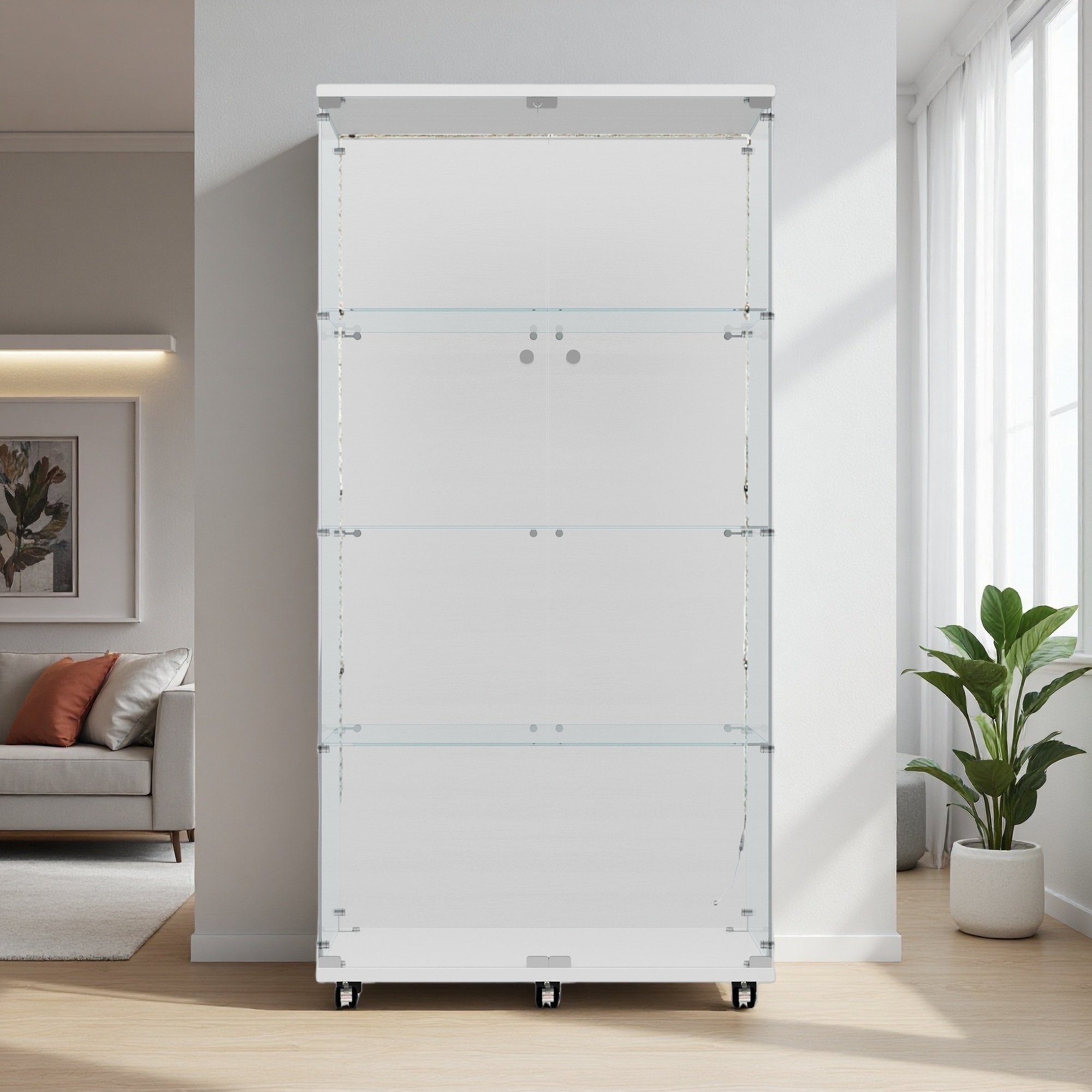 Tempered Glass Display Cabinet,Wine Cabinet,Storage Cabinet,File Cabinet,With Bluetooth Led Light Strip,Lockable Swivel Casters