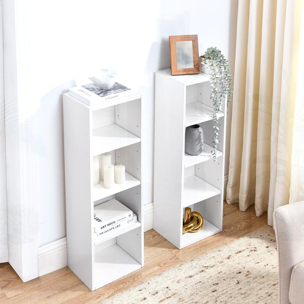 4-Shelf Corner Bookcase White Finish Modern Space-Saving Storage Organizer with Open Display for Compact Rooms