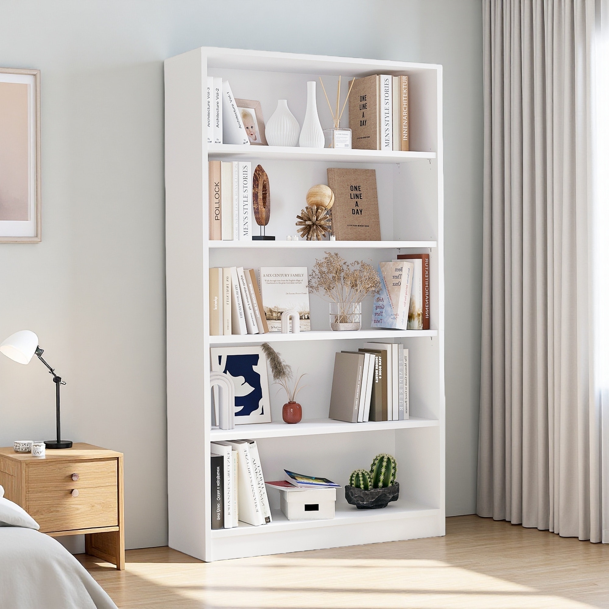 60"H Wood Bookcase, 5-Shelf Adjustable Bookshelf for Bedroom, Sturdy and Easy to Assemble with Wall Anchor Hardware