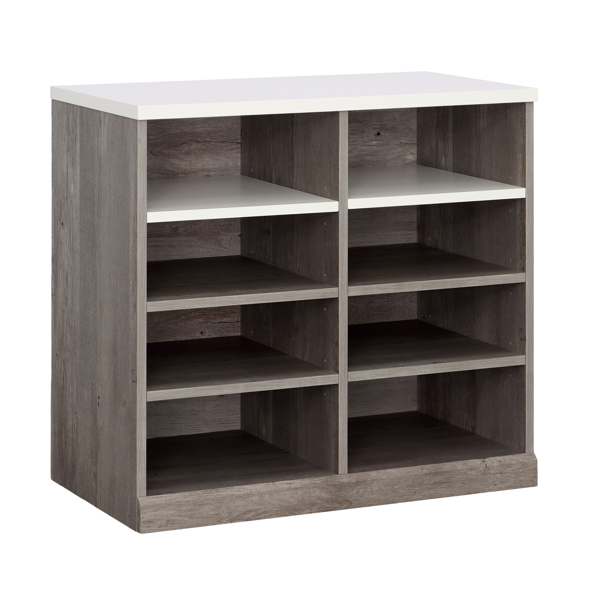 Wood Open Storage Cabinet with Adjustable Shelves, Brown - 32.05" W x 17.68" D x 30.00" H