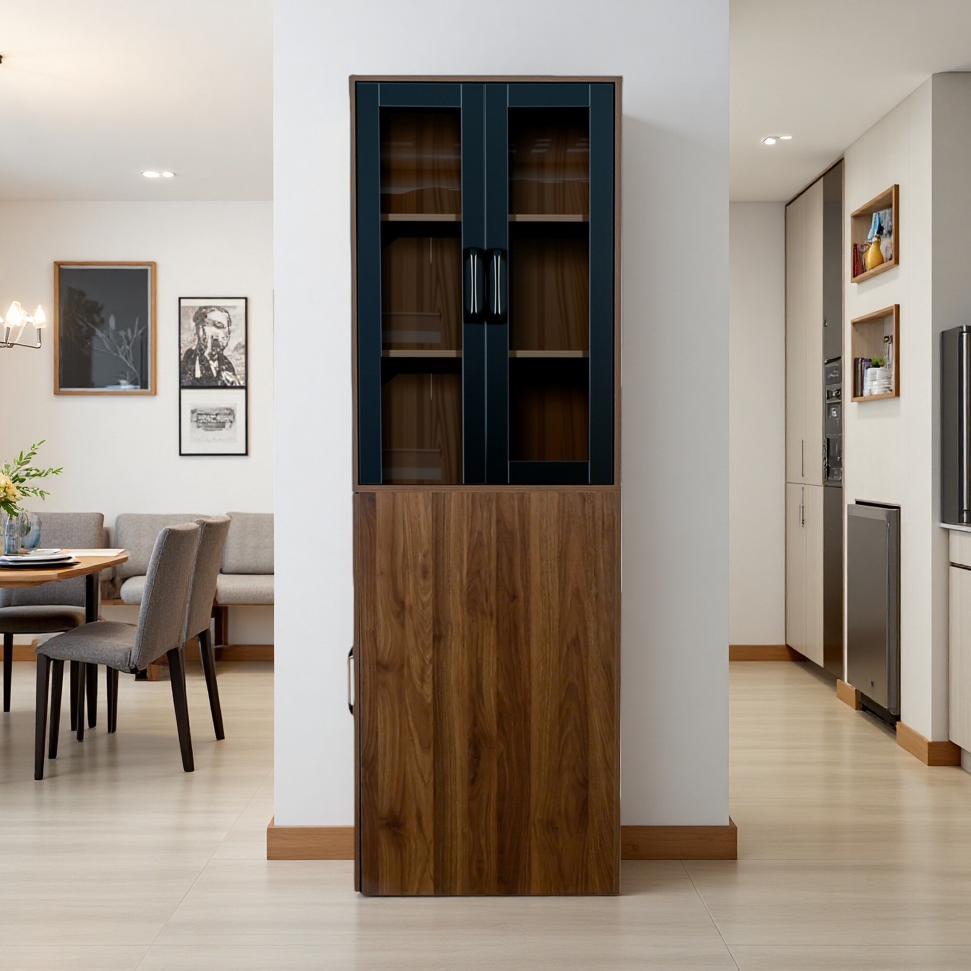 70.87"H Wooden Display Cabinet, 4-Tier Pull-Out Shelf, 2 Glass Doors, Kitchen & Living