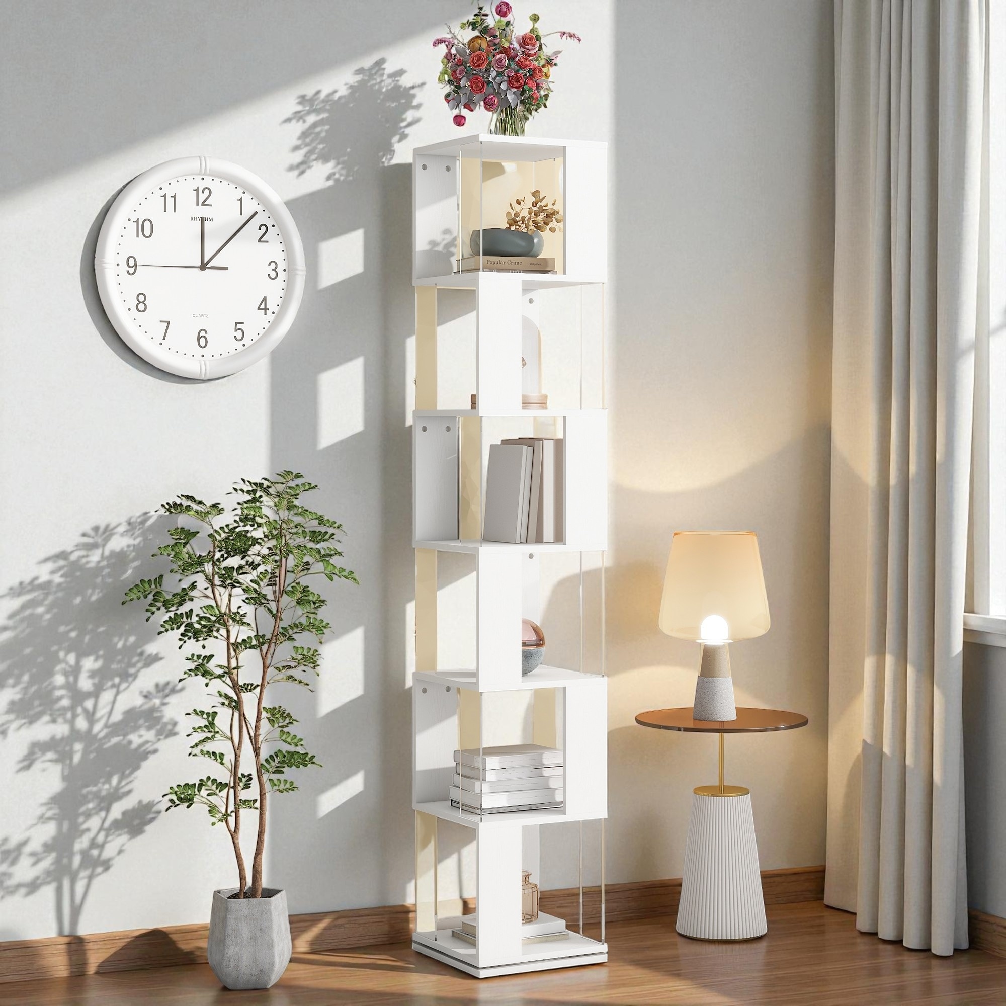 6-Tier 360° Rotating Bookshelf with Acrylic Panels, Space-Saving Floor Bookcase, Modern Multi-Functional Storage Rack for Study