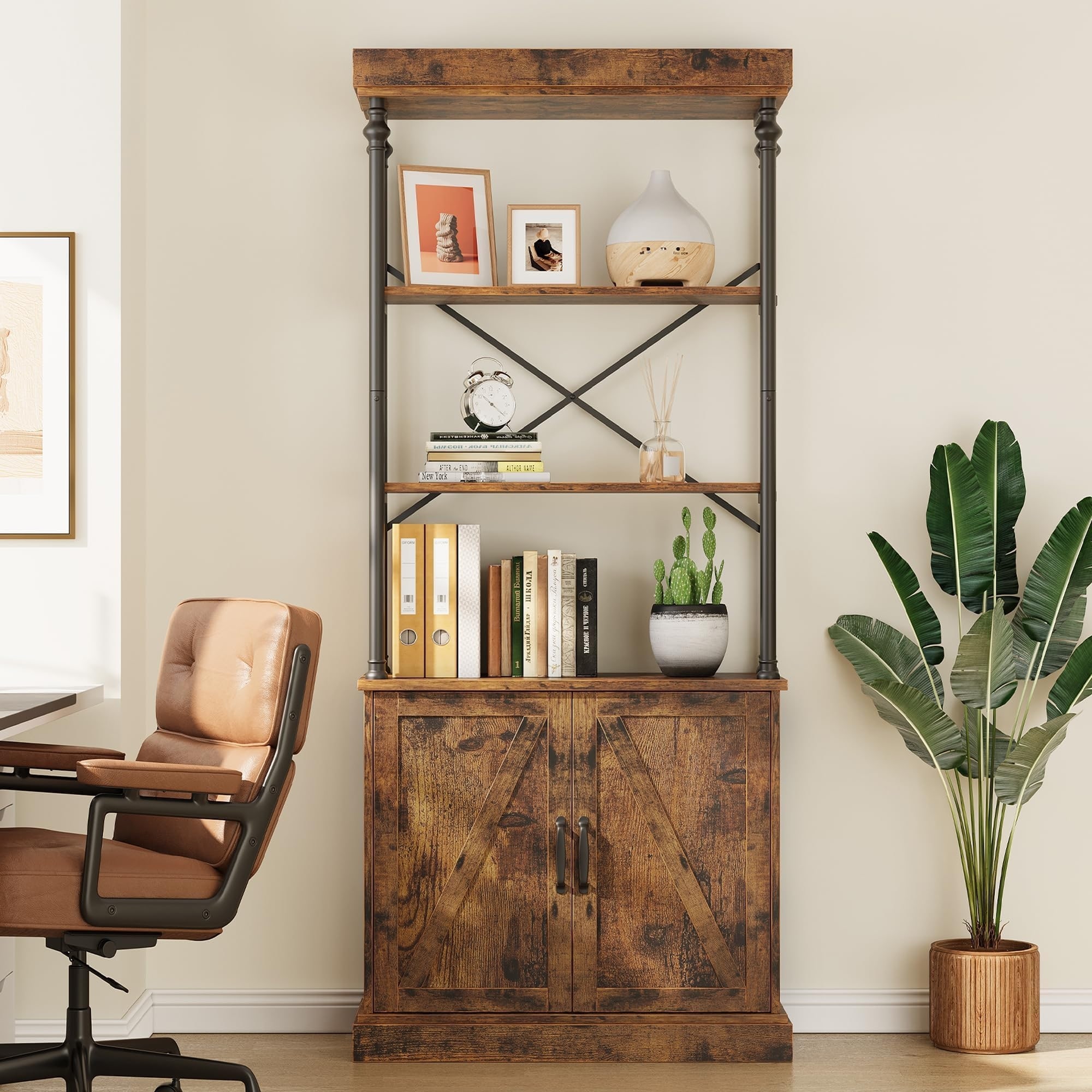 Industrial Bookshelf with Doors 4-Tier Storage Shelf with Cabinet