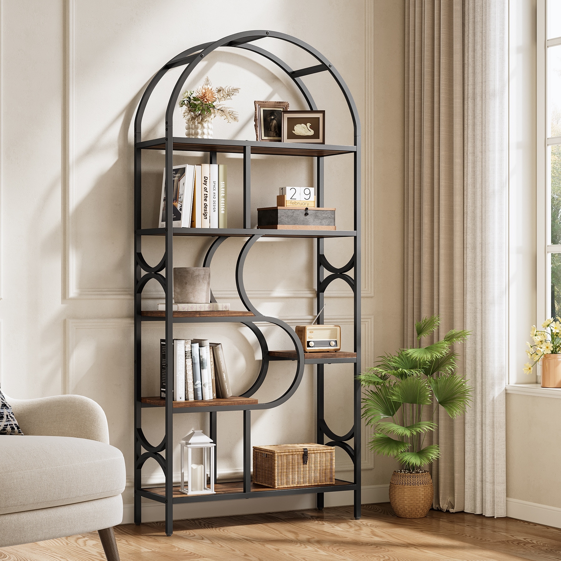 Bookcase with Doors Industrial Bookshelf 11.8in Depth Display Storage Shelves
