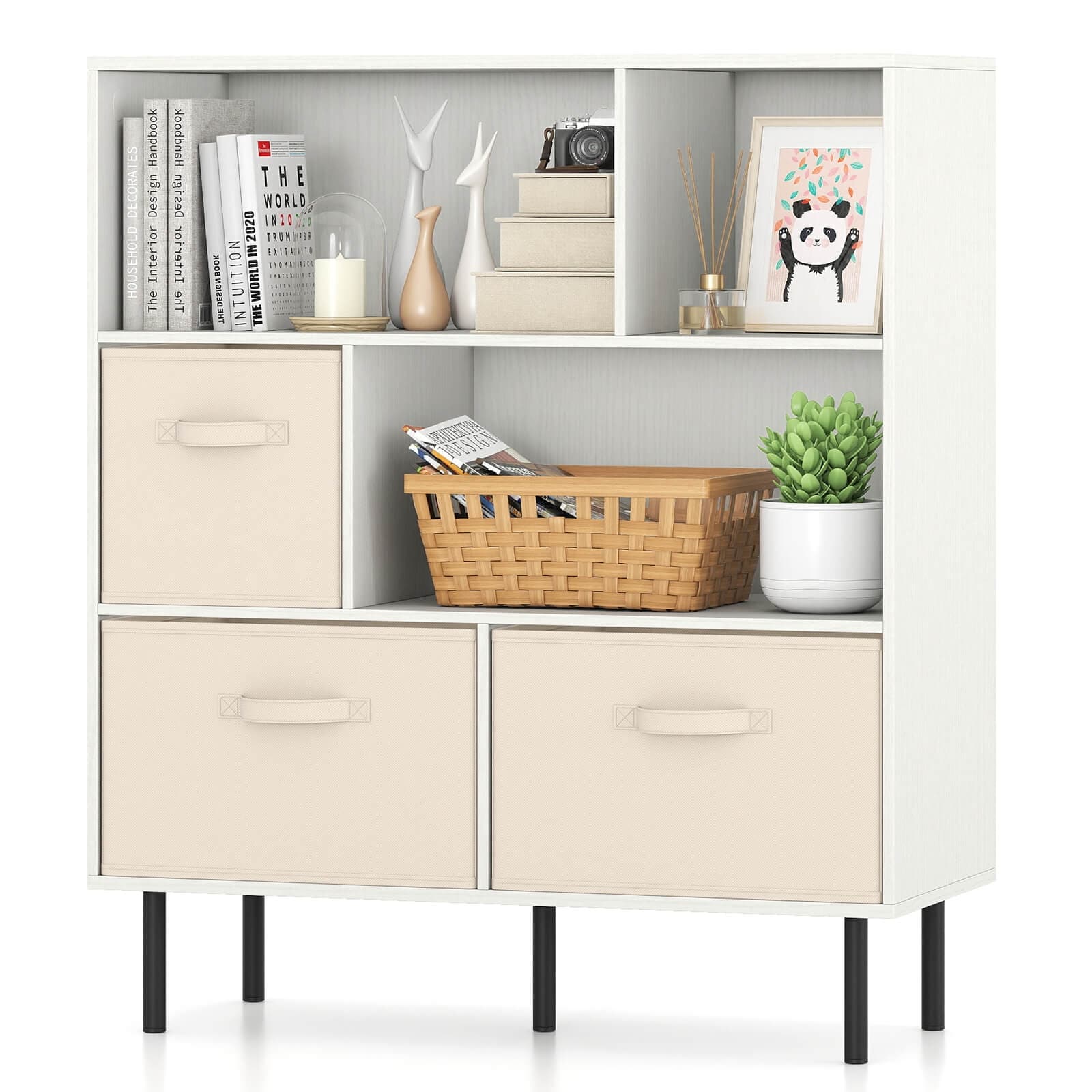 Costway 6-Cube Bookshelf with 3 Removable Folding Fabric Drawers Metal - See Details