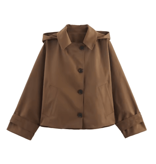 Modern Hooded Trench Coat Short Lapel Single Breasted Autumn Jacket army Green l(us 08 10)