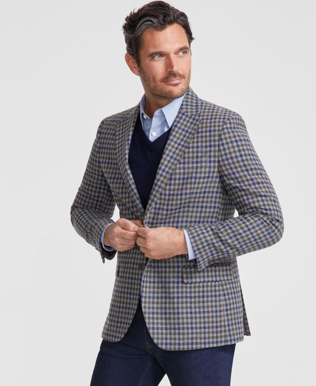 Modern-fit Gray Check Tweed Sport Coat - Gray - Nautica Coats