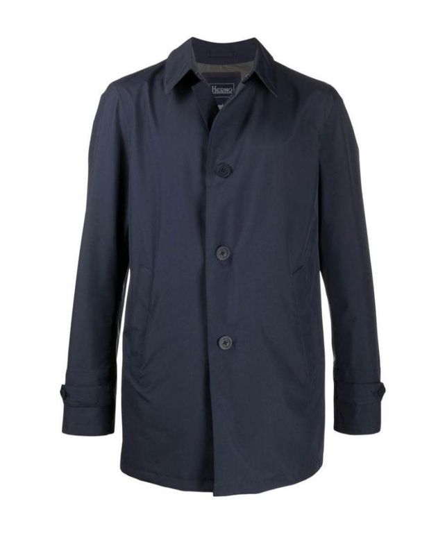 Point-Collar Button-Through Coat - Blue - Herno Coats