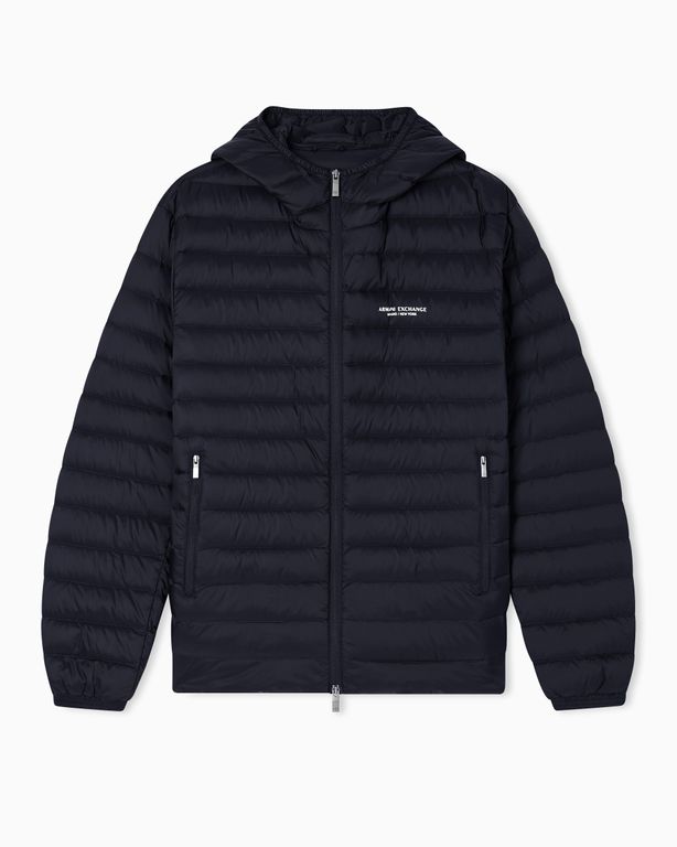 Full Zip Down Jacket With Hood - Black - ARMANI EXCHANGE Jackets