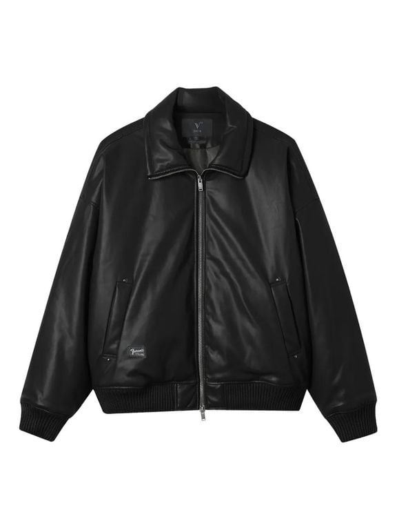 High-Neck Ribbed-Cuff Jacket - Black - FIVE CM Jackets