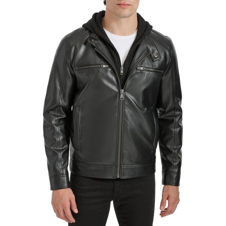 Hooded Faux Leather Jacket - Black - Kenneth Cole Jackets