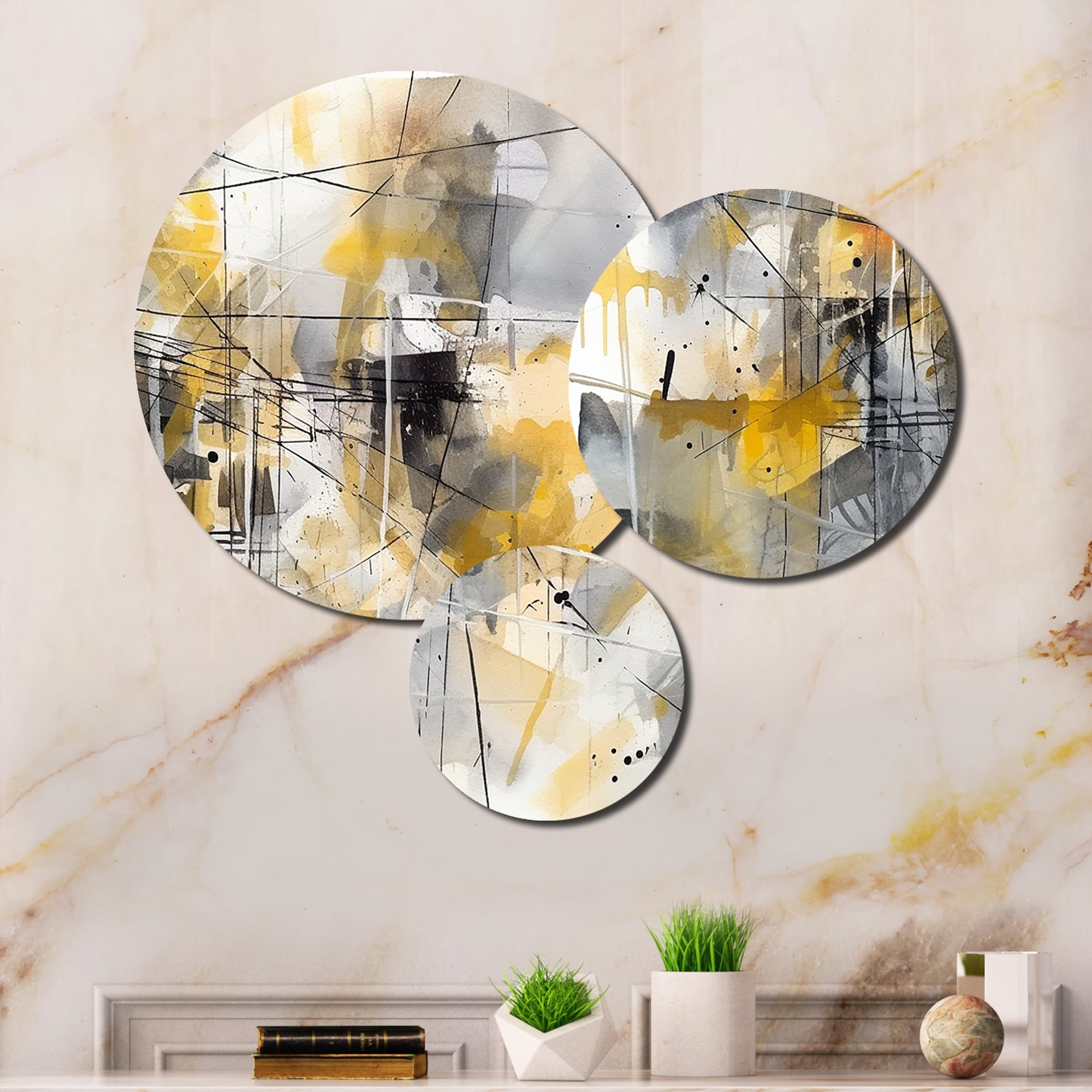Designart "Yellow and Grey Beyond The Canvas I" Abstract Metal Wall Decor Set