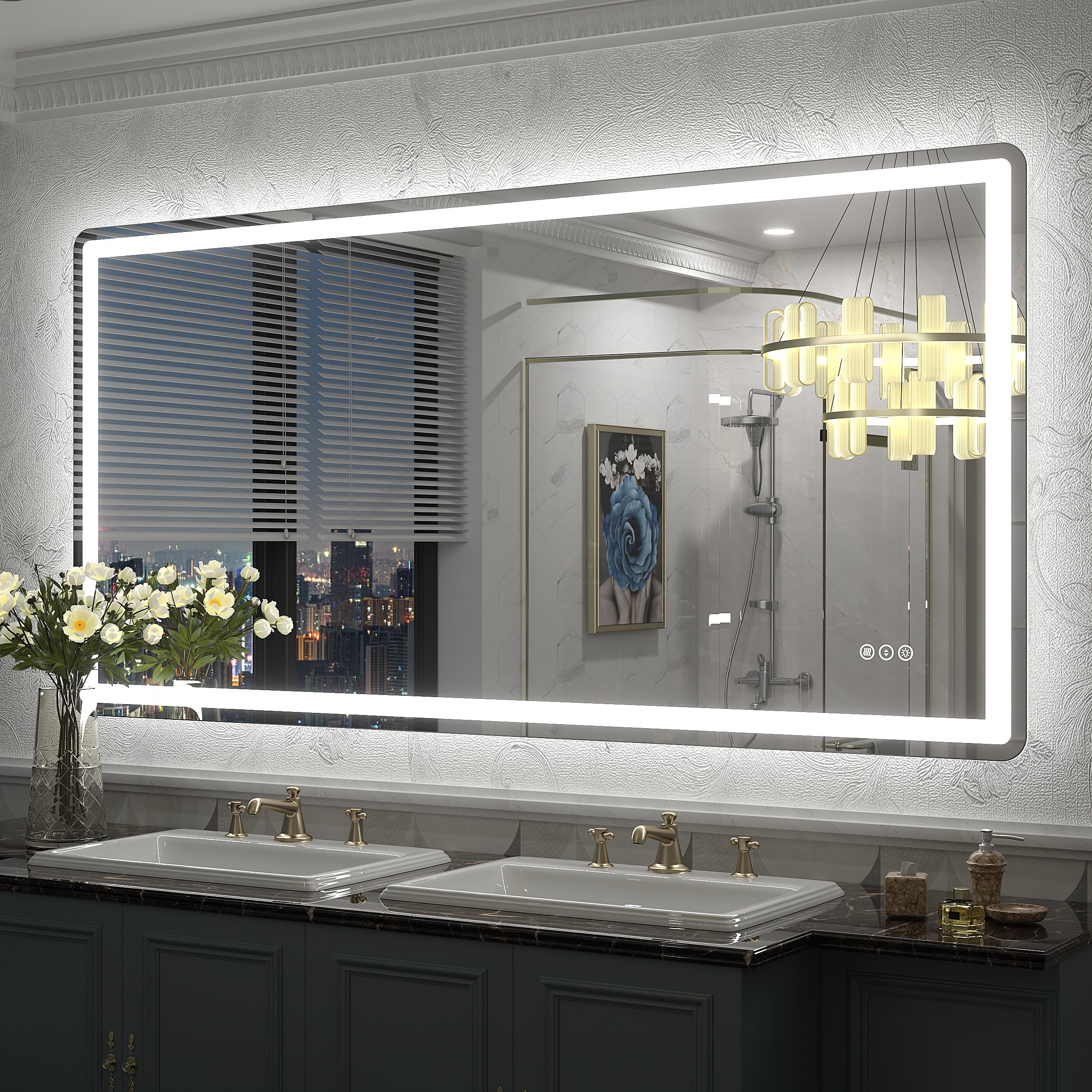CB HOME Bathroom Mirror with Lighted, LED Wall Mounted Anti-Fog Bathroom Vanity Mirror, Backlit&Front Lighted,Frameless,Dimmable