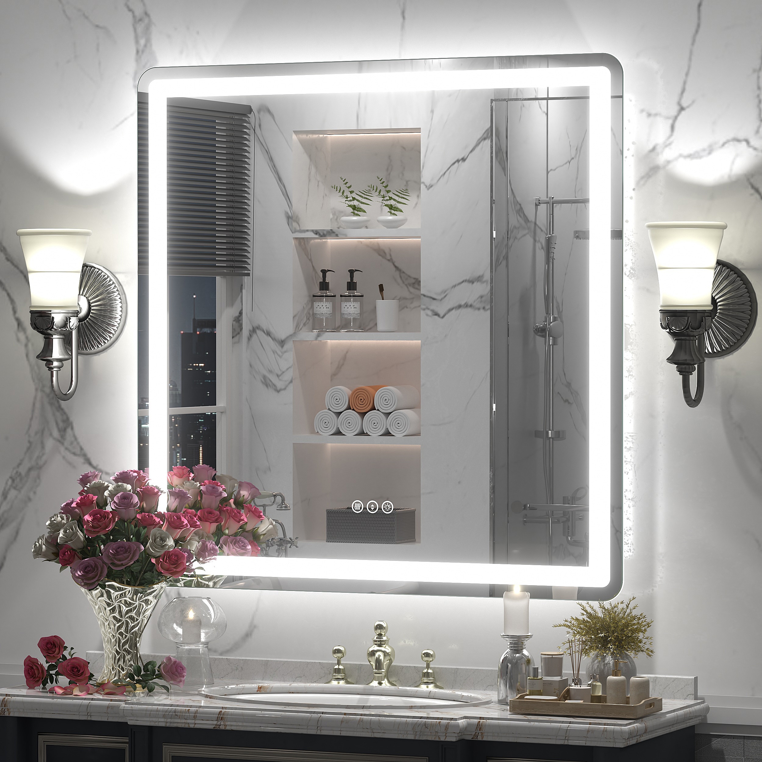 Modern LED Bathroom Wall-Mounted Vanity Mirror with Aluminum Frame
