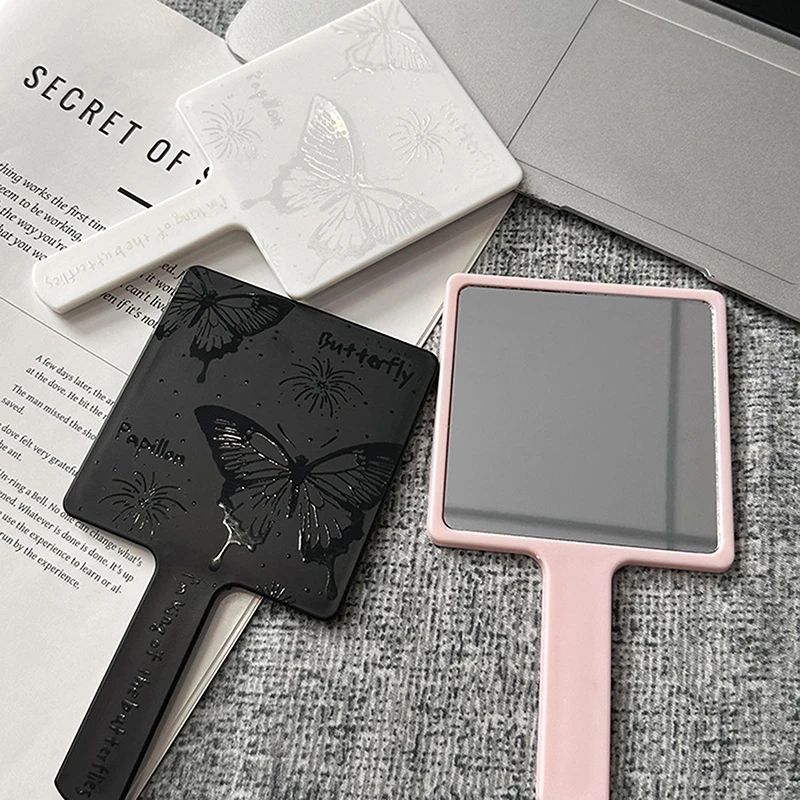 Cute Handheld Mirror With Handle, Compact Makeup Mirror Tool, Fashionable Plastic Handle Hand Mirror 4 Colors red