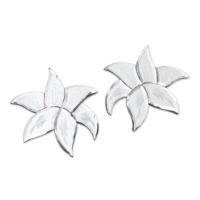 Leafy Reflection,'Leaf Motif Glass Decorative Wall Mirrors from Java (Pair)'