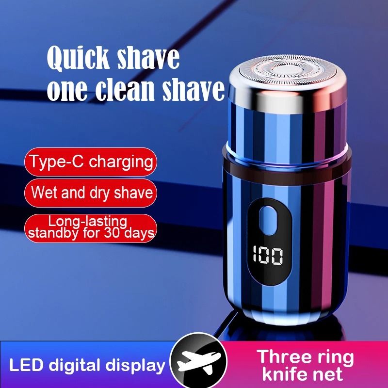 Mini Rotary Electric Razor For Men, Travel Beard Shaver With Magnetic Blade Head, Dual Floating Design & Type C Recharge gold
