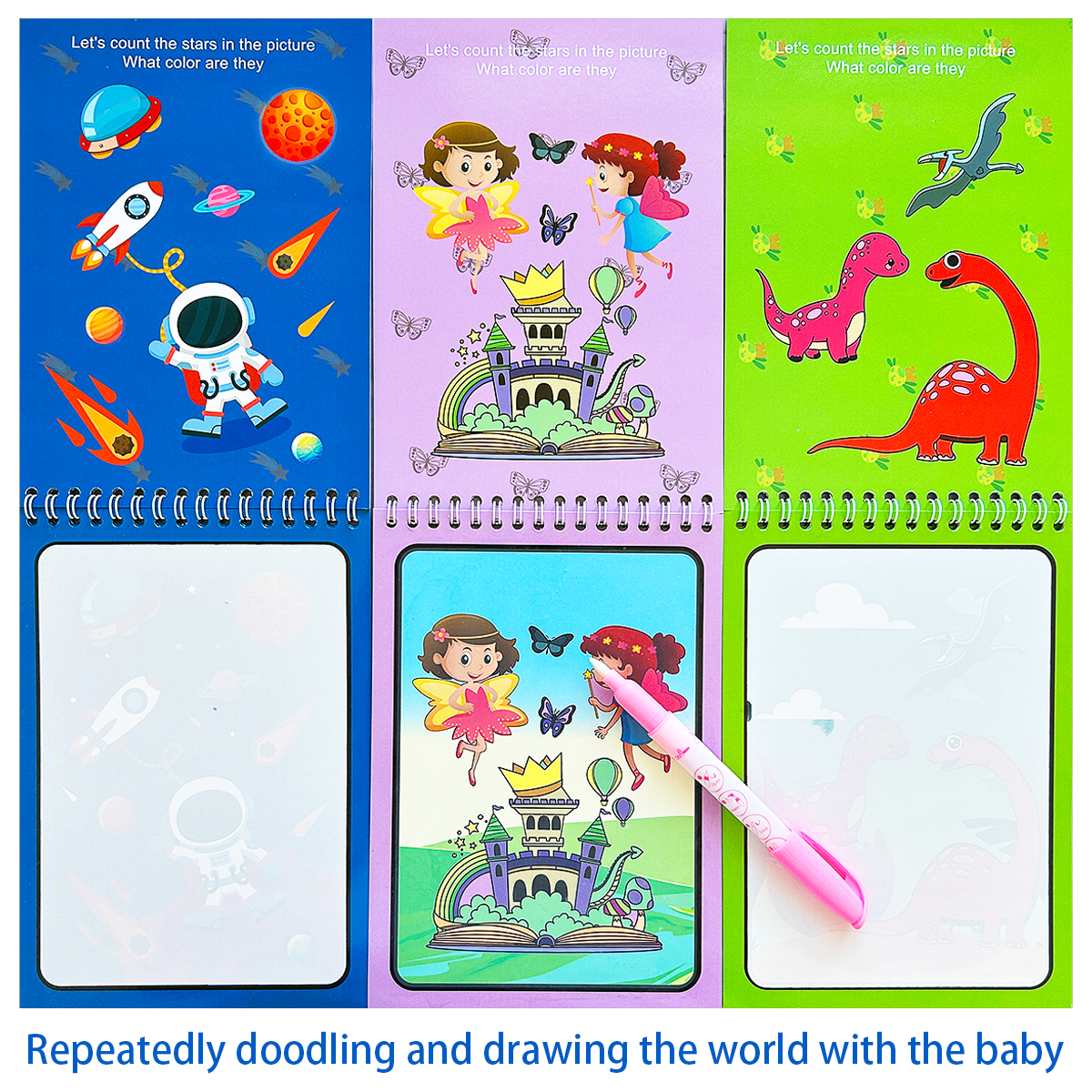 Colorbook Pen Bag Set, Erasable Marker Pen, Fun Coloring Books For Kids, Cartoon Drawing Picture Book houses