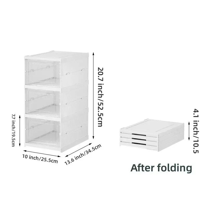 6 Layer Foldable Shoe Box Organizer, Transparent Stackable Sneaker Storage With Dustproof Design 3 layers