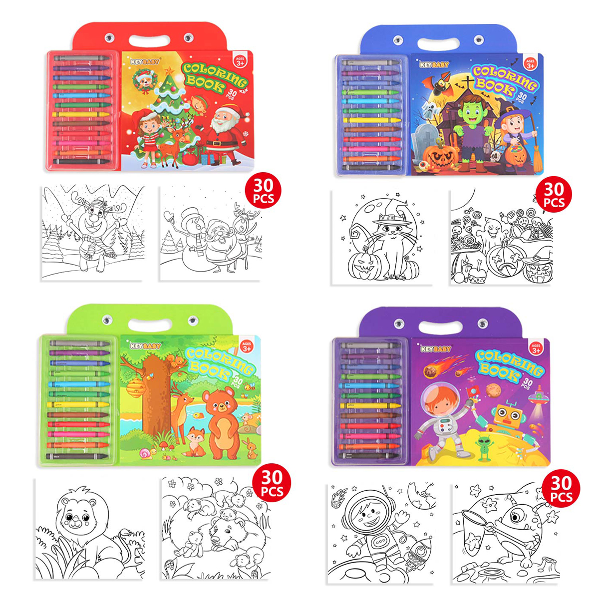 Childrens Coloring Book Set, Drawing Book With Colorful Crayon, Christmas, Halloween, Animal, Space Edition red