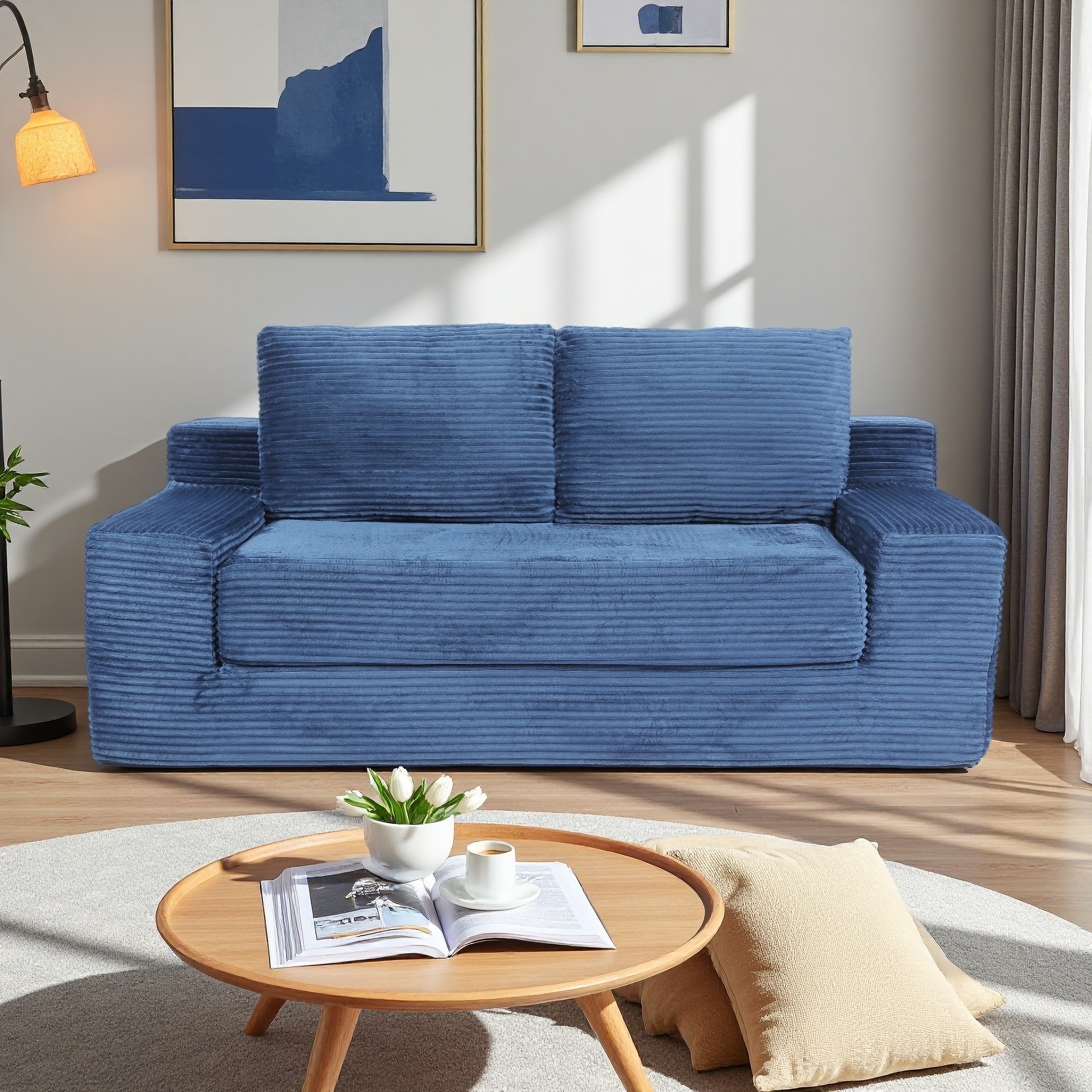 71.65" Corduroy Loveseat Sofa Bed, High-Density Memory Foam, Reversible Cushion, No Assembly, Modern Small Couch with Pillows
