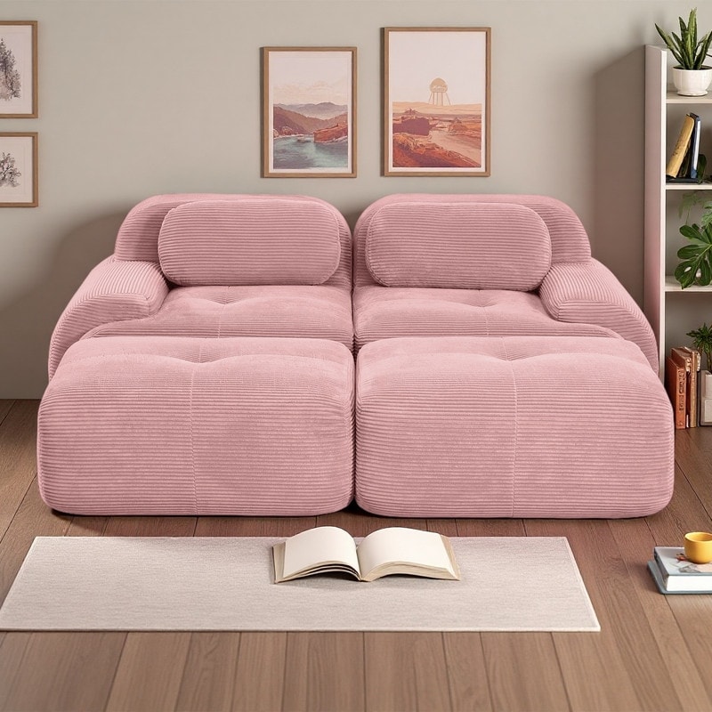 81.8" Corduroy Modular Sofa with Chaise Lounge, No Assembly Required and Anti-Slip Design (2-Seat)