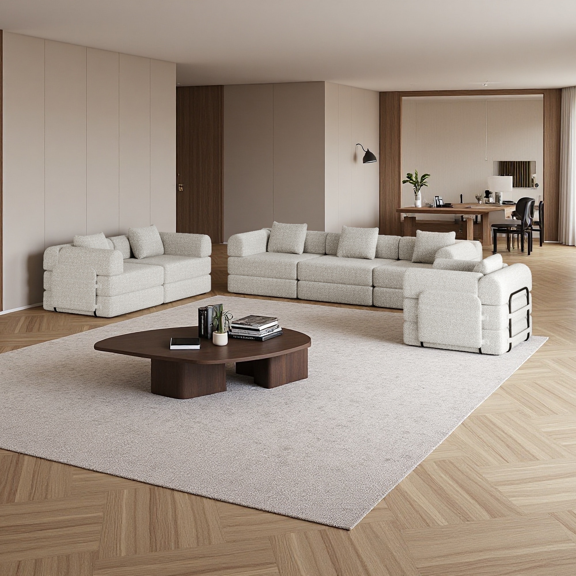Fabric Convertible Sofa Bed Set with Storage Pockets (6-Seater)
