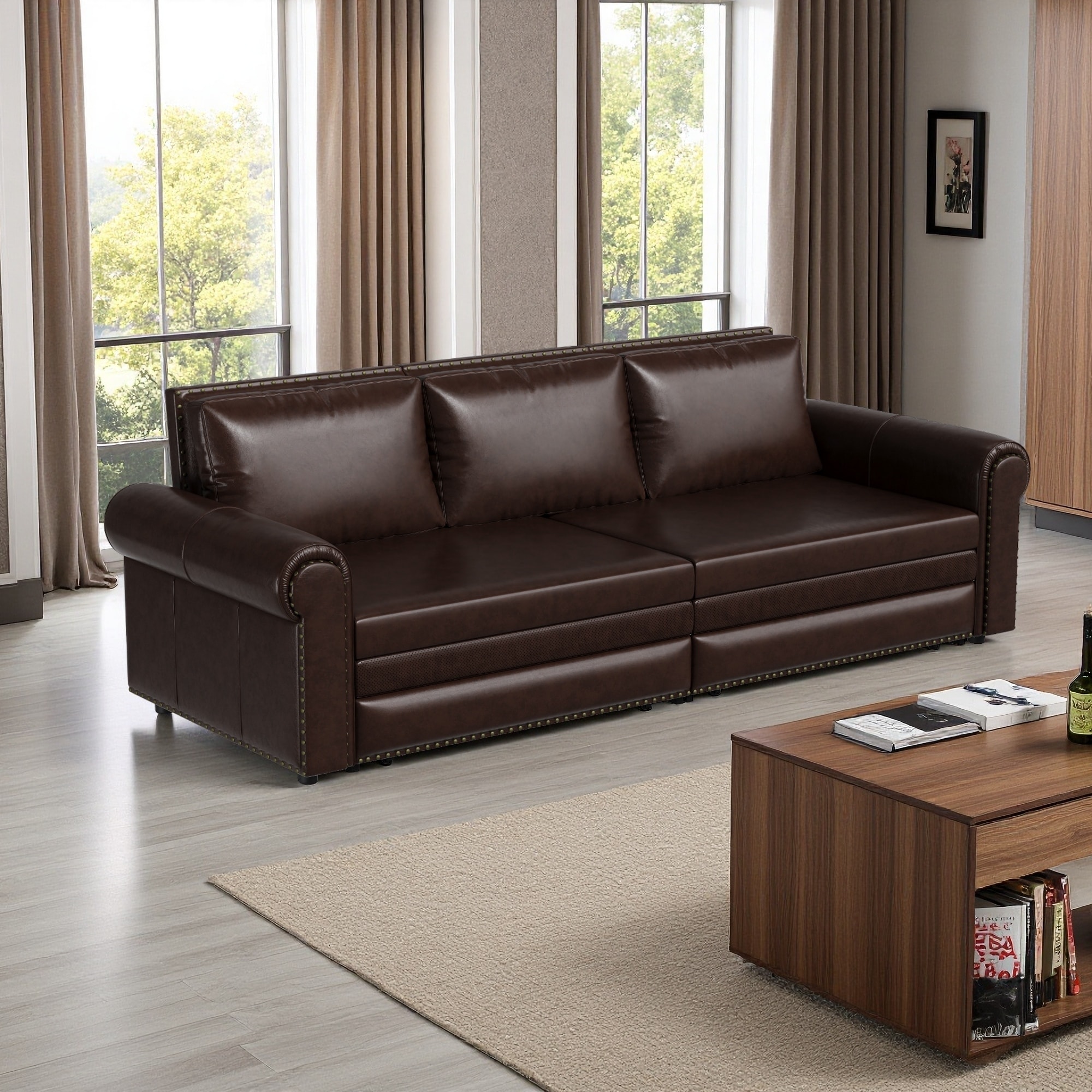 93.7" Chesterfield Faux Leather Multi-Functional Sofa Bed, 3-in-1 Convertible King Pull Out Sleeper Sofa with Nailhead Trim