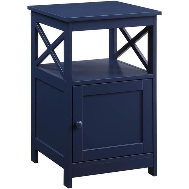 Transitional End Table with Storage Cabinet and Shelf in Cobalt Blue