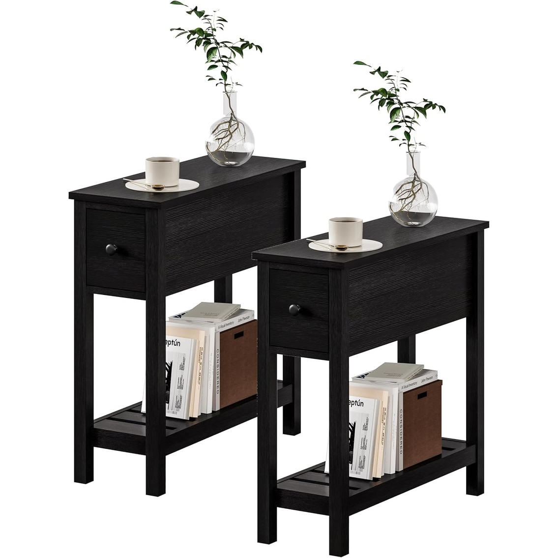 Compact Side Table with Drawer and Open Shelf, Space-Saving Nightstand for Living Room or Bedroom, Black