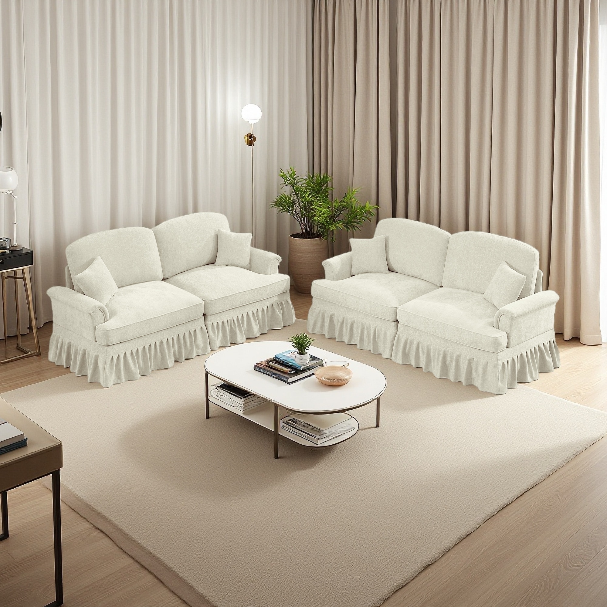 Chenille Modular Sofa Set with Flared Arms and Removable Skirts (4-Seater)