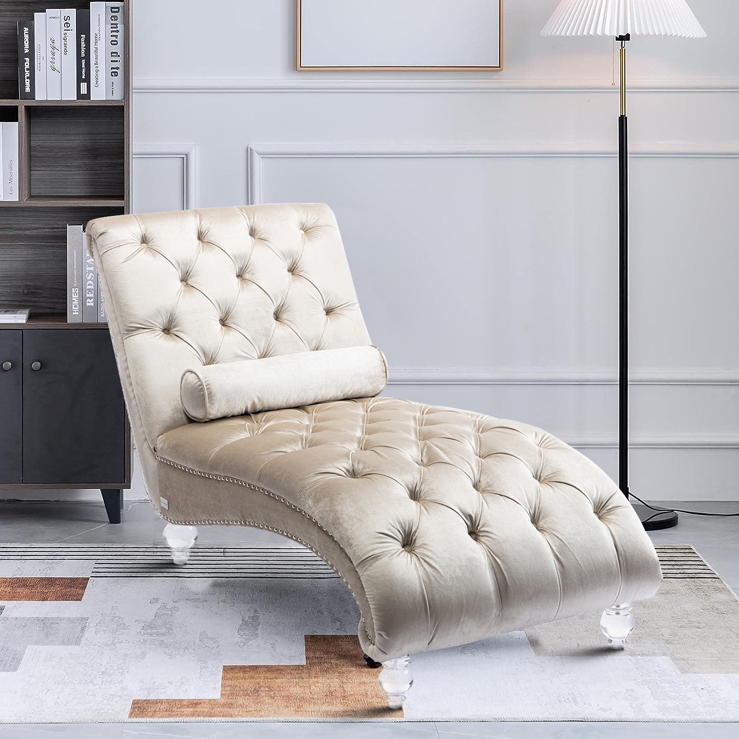 Elegant Stylish Velvet Upholstered Leisure Lounge Chair with Transparent Acrylic Legs