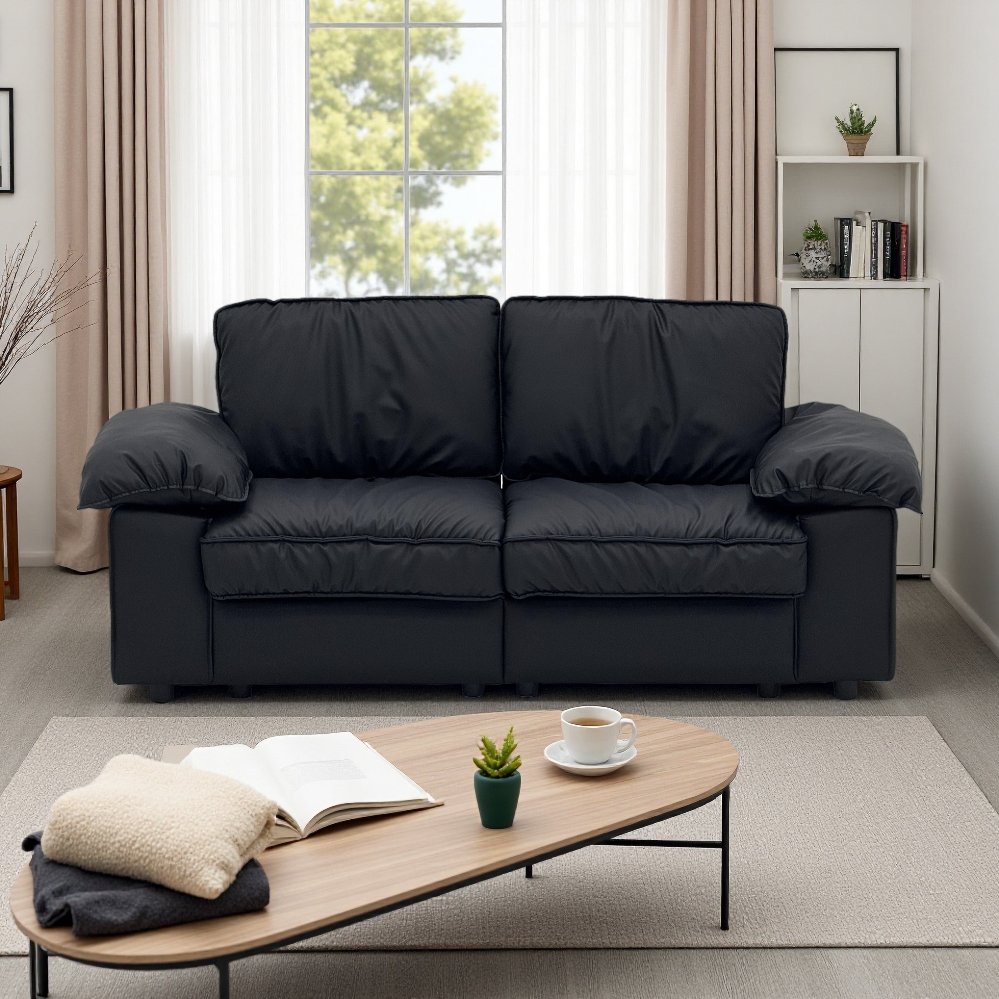 79'' Faux Leather 2-Seater Loveseat with Hidden Storage, Space-Saving Compact Sofa with Plush Cushions for Small Apartments
